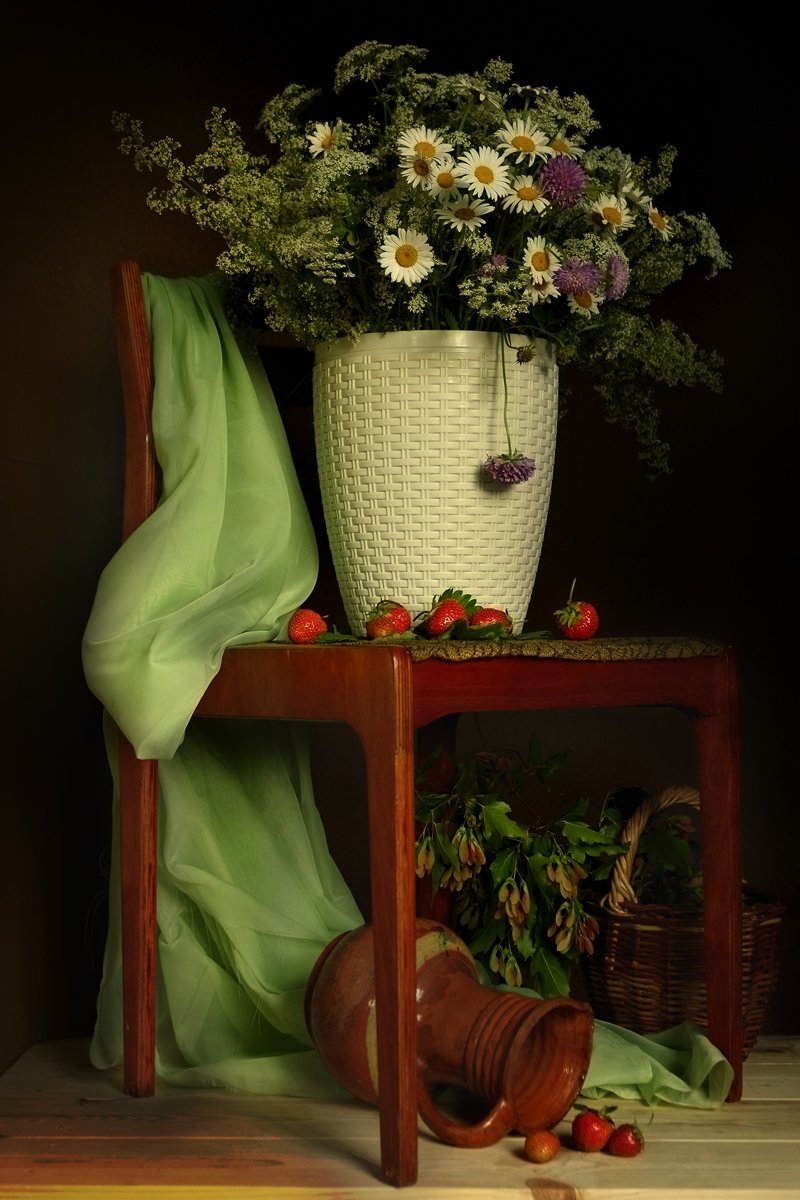 Букет полевых цветов, Букет ромашек, Клубника, Вера Павлухина