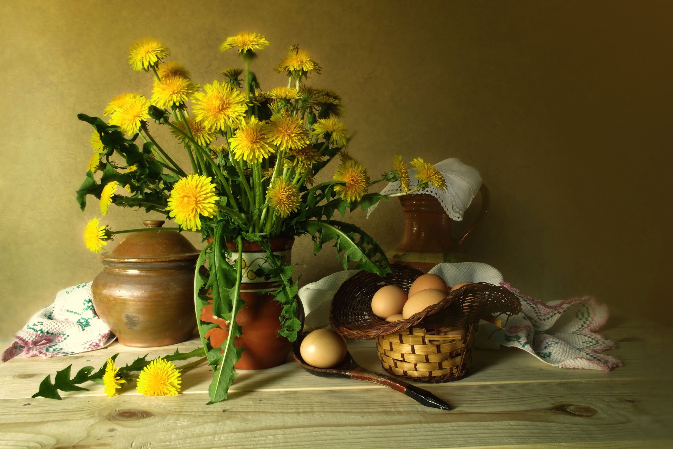Букет с одуванчиками, Глиняные изделия, Натюрморт, Рушник, Вера Павлухина