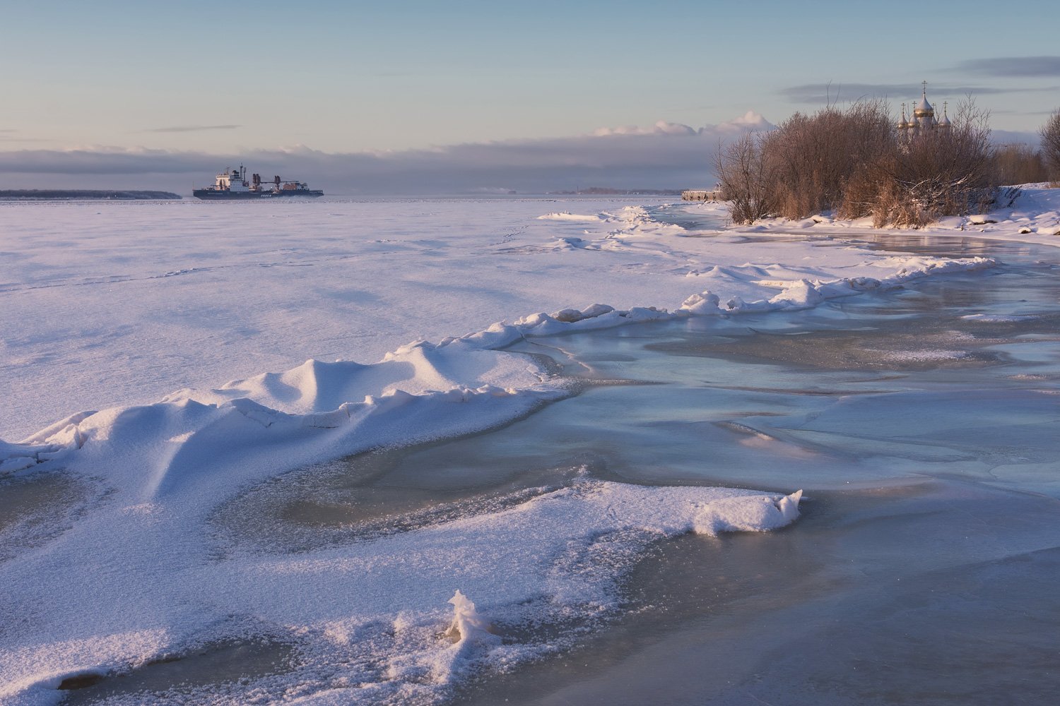 берег снег лед вечер, Ра Вера