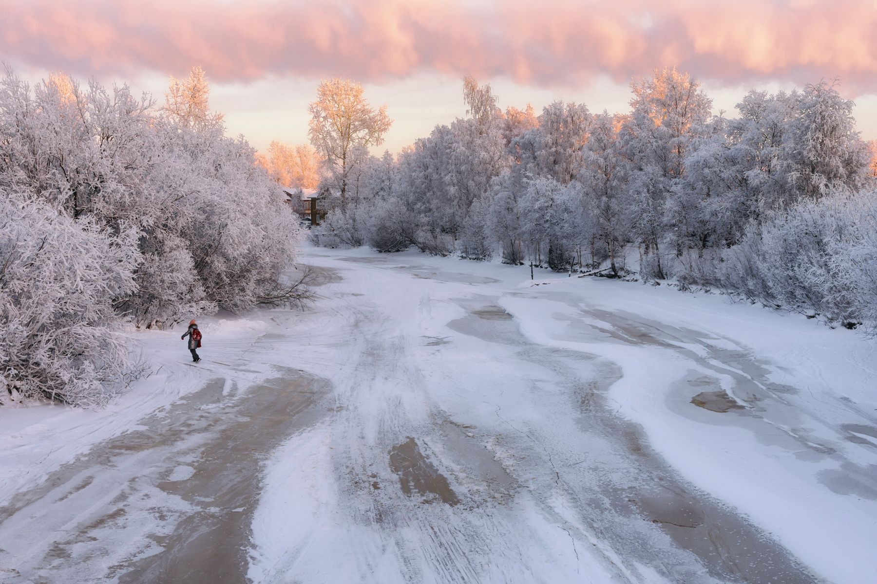 Река Соломбалка едва замёрзла, а дети уже вовсю носятся, сокращая