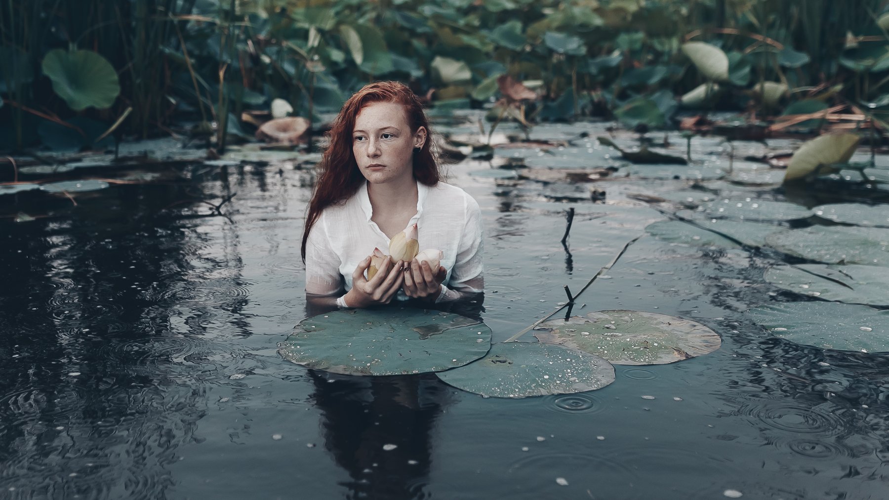 рыжая девочка лотосы рыжая девочка лотосы вода зеркальный фотоаппарат canon markiii прогулка фотосессия детский и семейный фотограф лето вечер закат закатное солнышко дети детки красота рыжики девочка рыжая девочка любовь счастье закат дерево радость вост, Вероника Гергерт