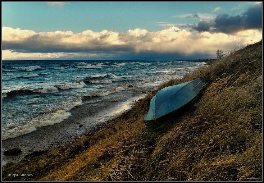 Осенний шторм на Байкале. Это частое явление в это время. Он как бы очищается перед зимой, выбрасывая на берег различный мусор, сети и прочие человеческие "подарки"...