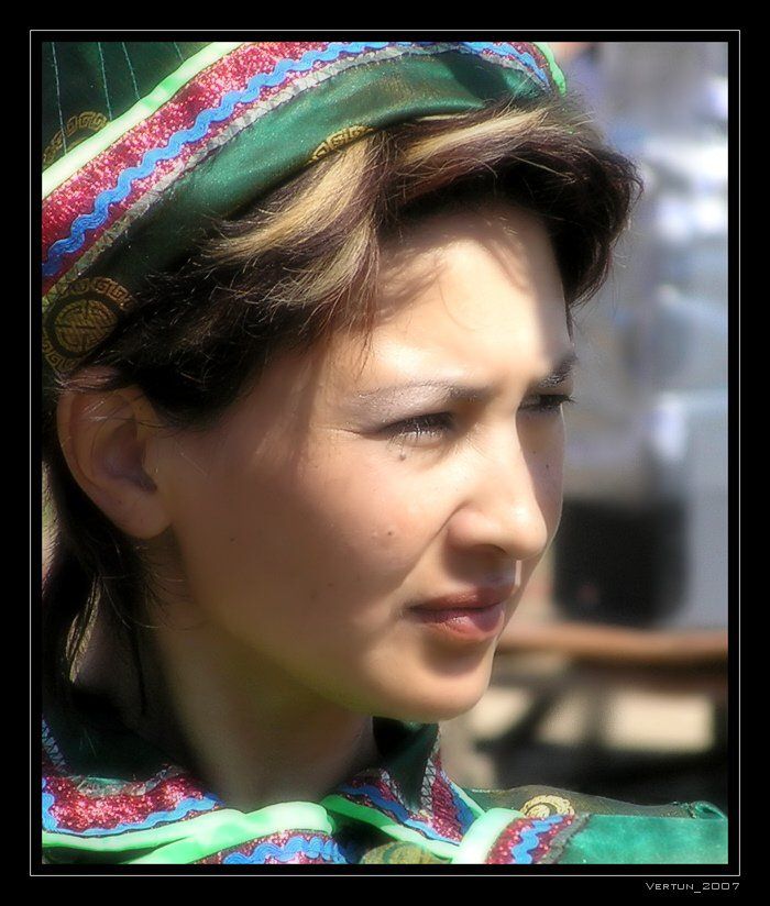 Лучница. Кадр НЕ постановочный. Снимок сделан на максимальном оптическом зуме (х10) в момент пристрелки лучников. Международный фестиваль "Алтаргана-2006". Бурятия.