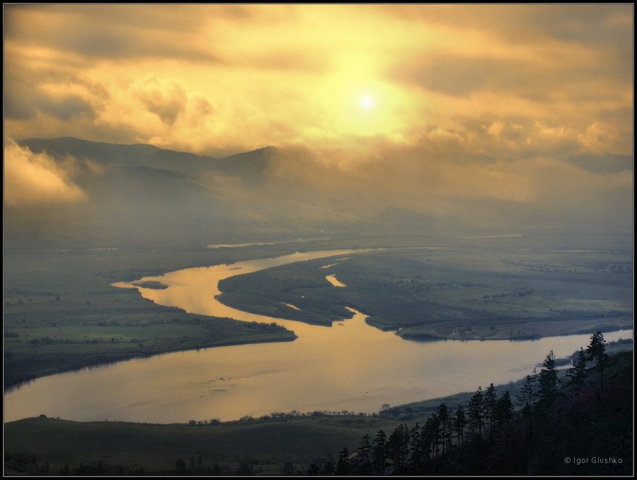 рассвет, туман, горы, осень, река, вода, Игорь Глушко