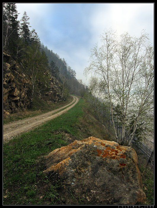 Участок старой автодороги Улан-Удэ - Иркутск. Место называется Мандрик. Достаточно узкая и опасная. Чтобы разъехаться со встречной машиной, нужно было встать в один из "карманов". Дорогу закрыли в семидесятых годах прошлого века. Сейчас есть объездная. Внизу проходит ВСЖД (Восточно-Сибирская железная дорога).