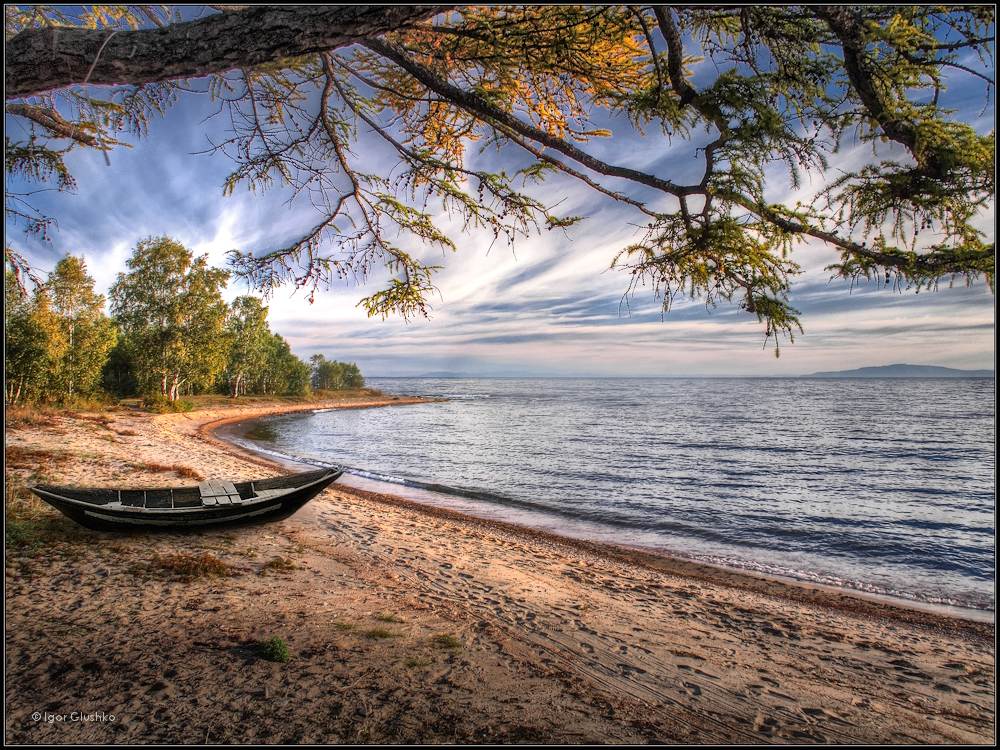 байкал, берег, лодка, осень, Игорь Глушко