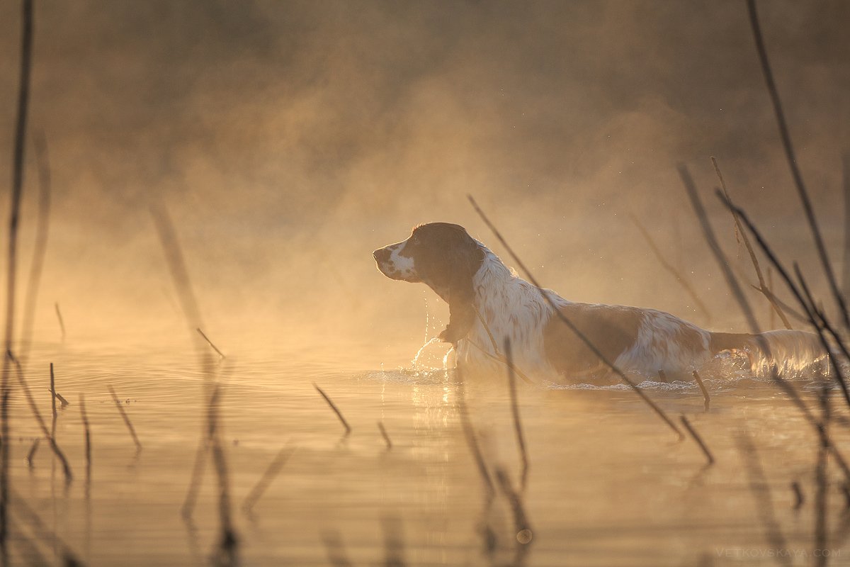 спаниель, рассвет, спрингер, туман, Анастасия Ветковская