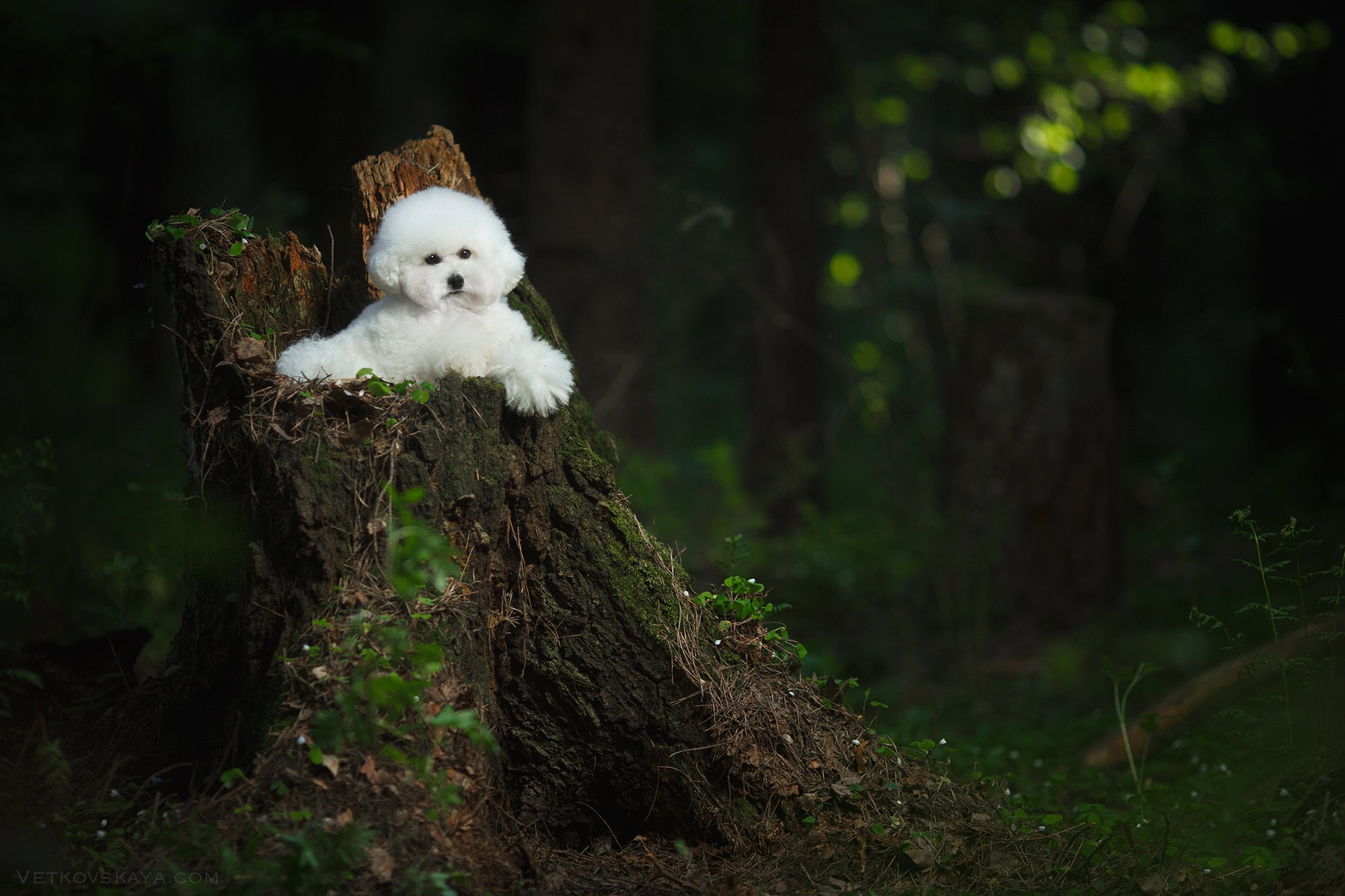 собака, лес, пудель, мох, бишон, Анастасия Ветковская