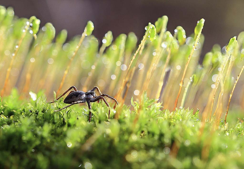 Весна, мох, Паук, лучи, вечер, боке, волшебное дерево, оно горит, вечер, солнце, красота, мох, цветущий;, Виктор