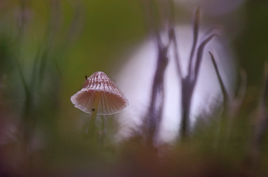 гриб,осень,чаща,листья,ветки,лес,мох,деревья,растения,натура,фон,зеленый,коричневый,красиво,листва,пасмурно., Виктор Шнайдер