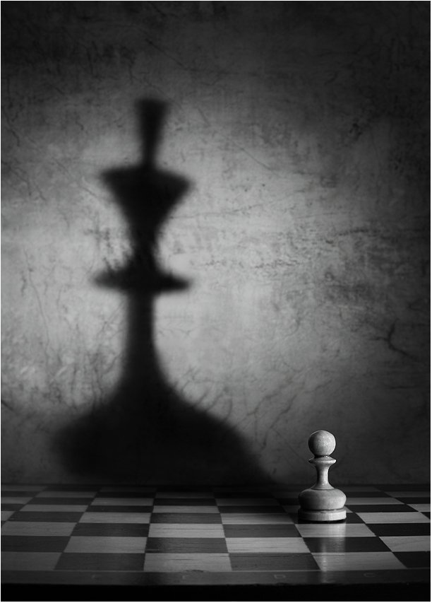 А последние секунды я провела светом по всей композиции, направляя луч справа, что подсветило пешку еще и с правого бока, ну и доску тоже :-).