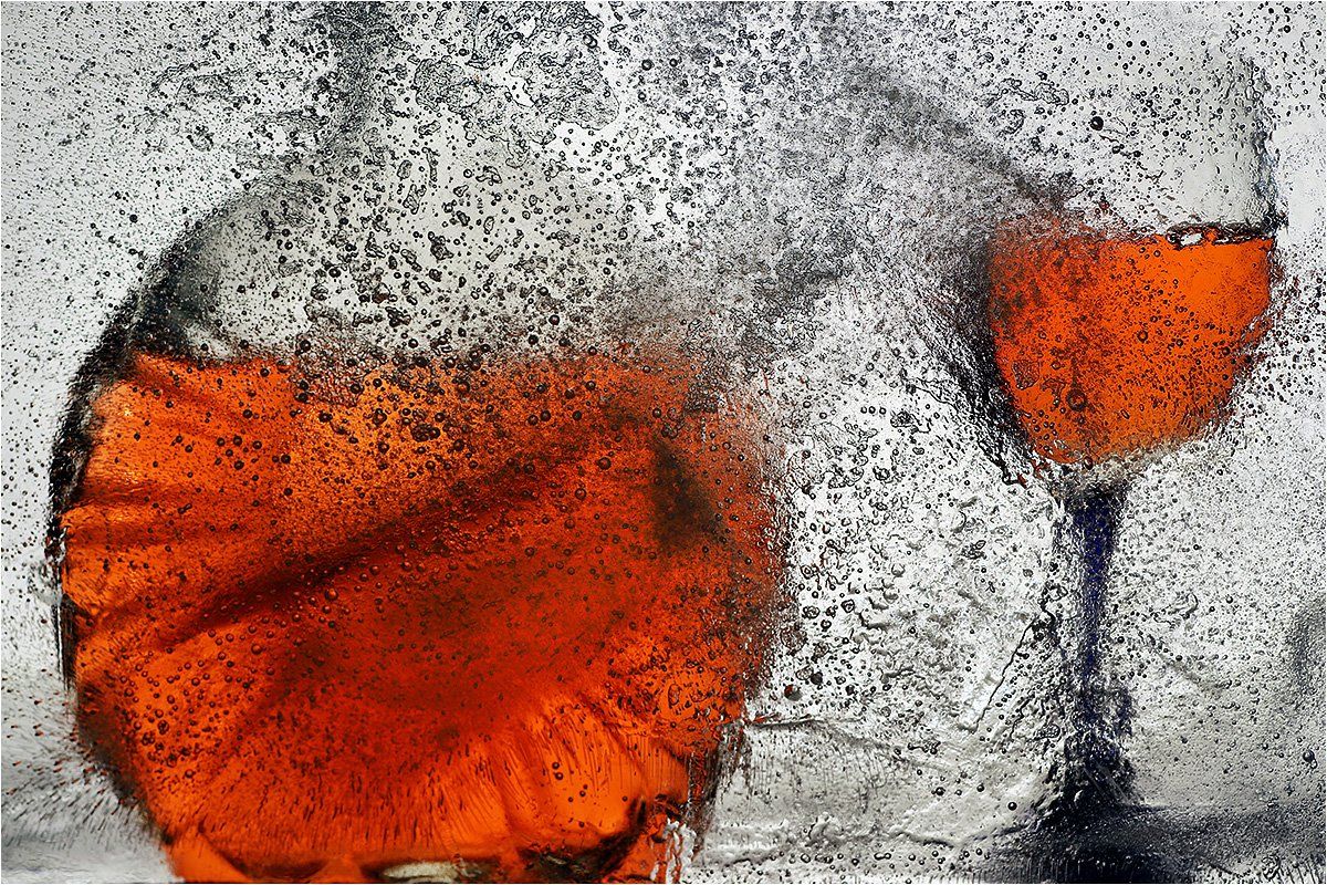 бутылка, бокал, синий бокал, бокал вина, вино, лёд,, Victor Pechenev
