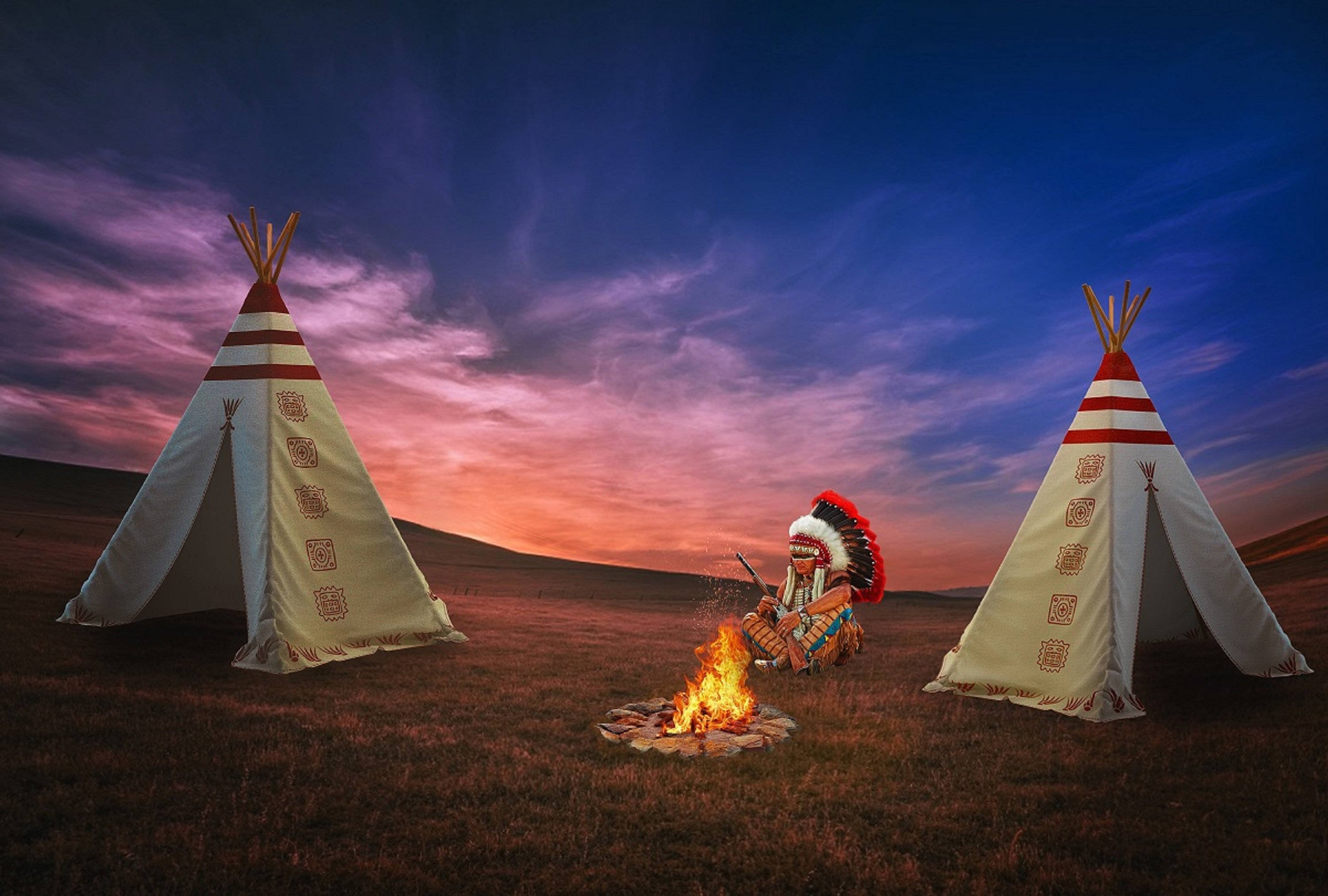 индеец, вигвам, небо, вождь, Sergii Vidov
