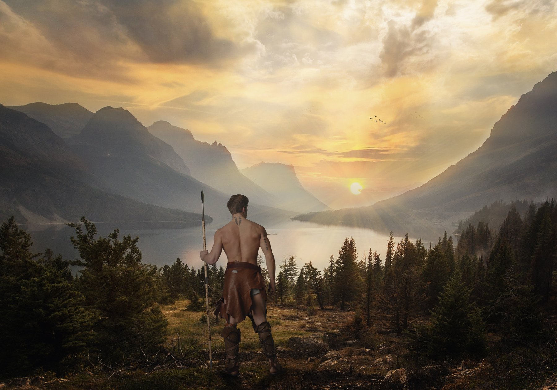 воин, горы, залив, облака, Sergii Vidov