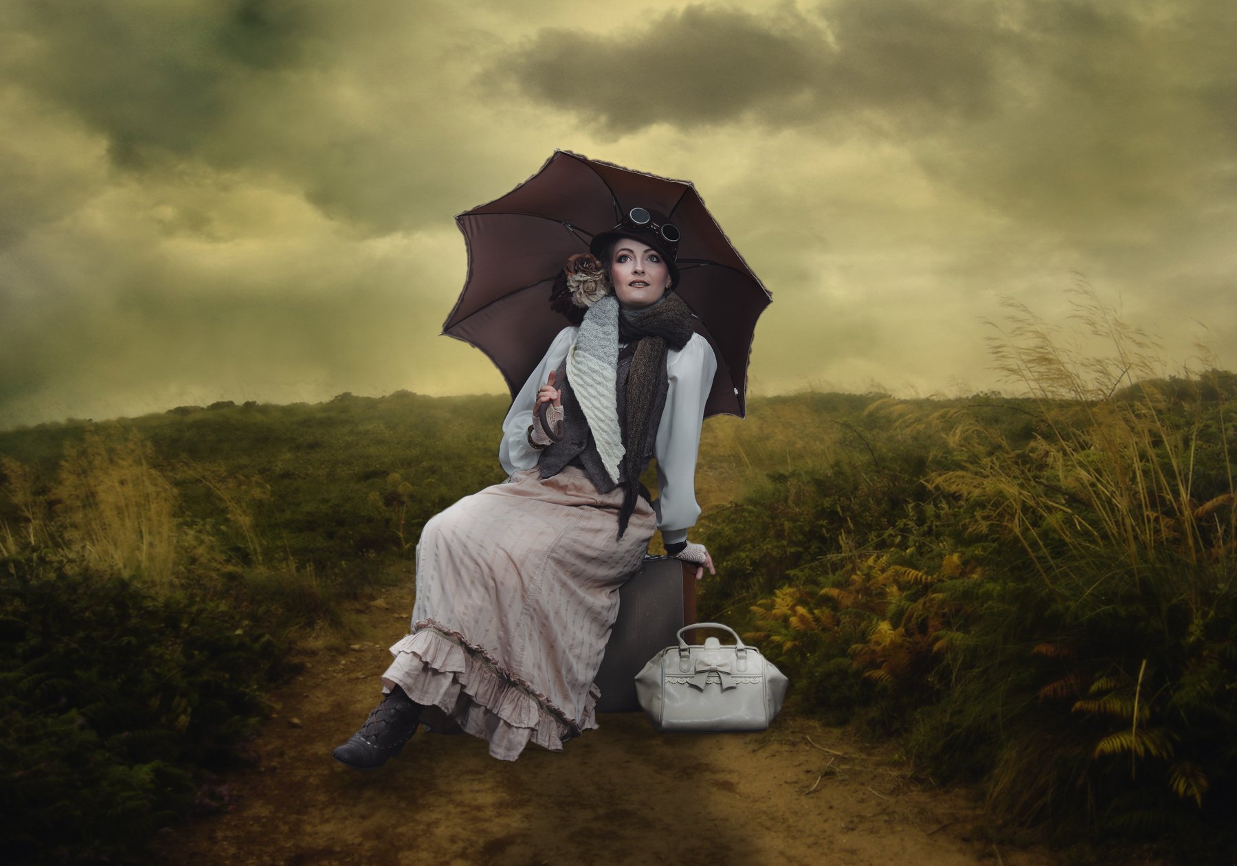 девушка, поле, чемодан, Sergii Vidov