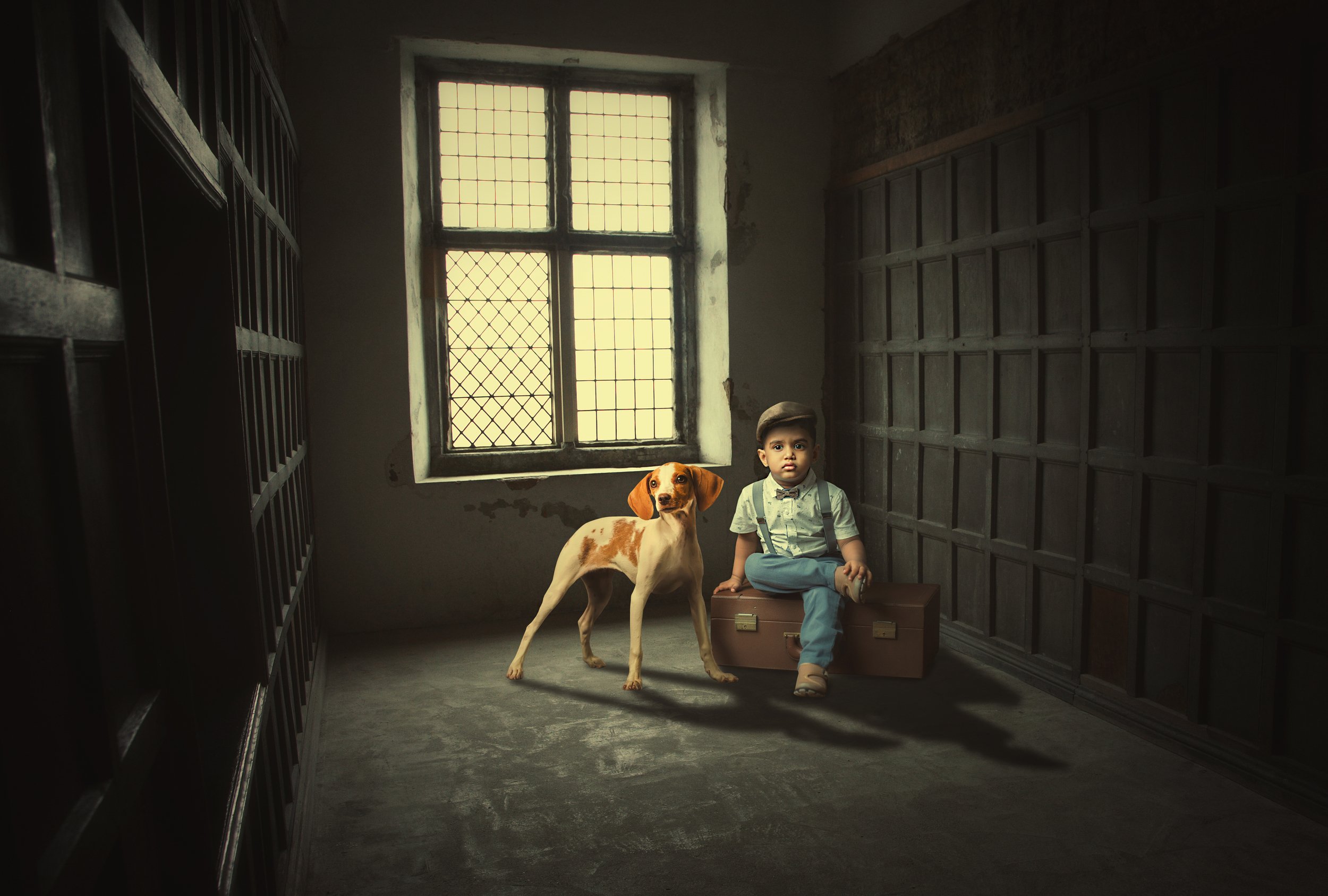 мальчик, собака, чемодан, Sergii Vidov
