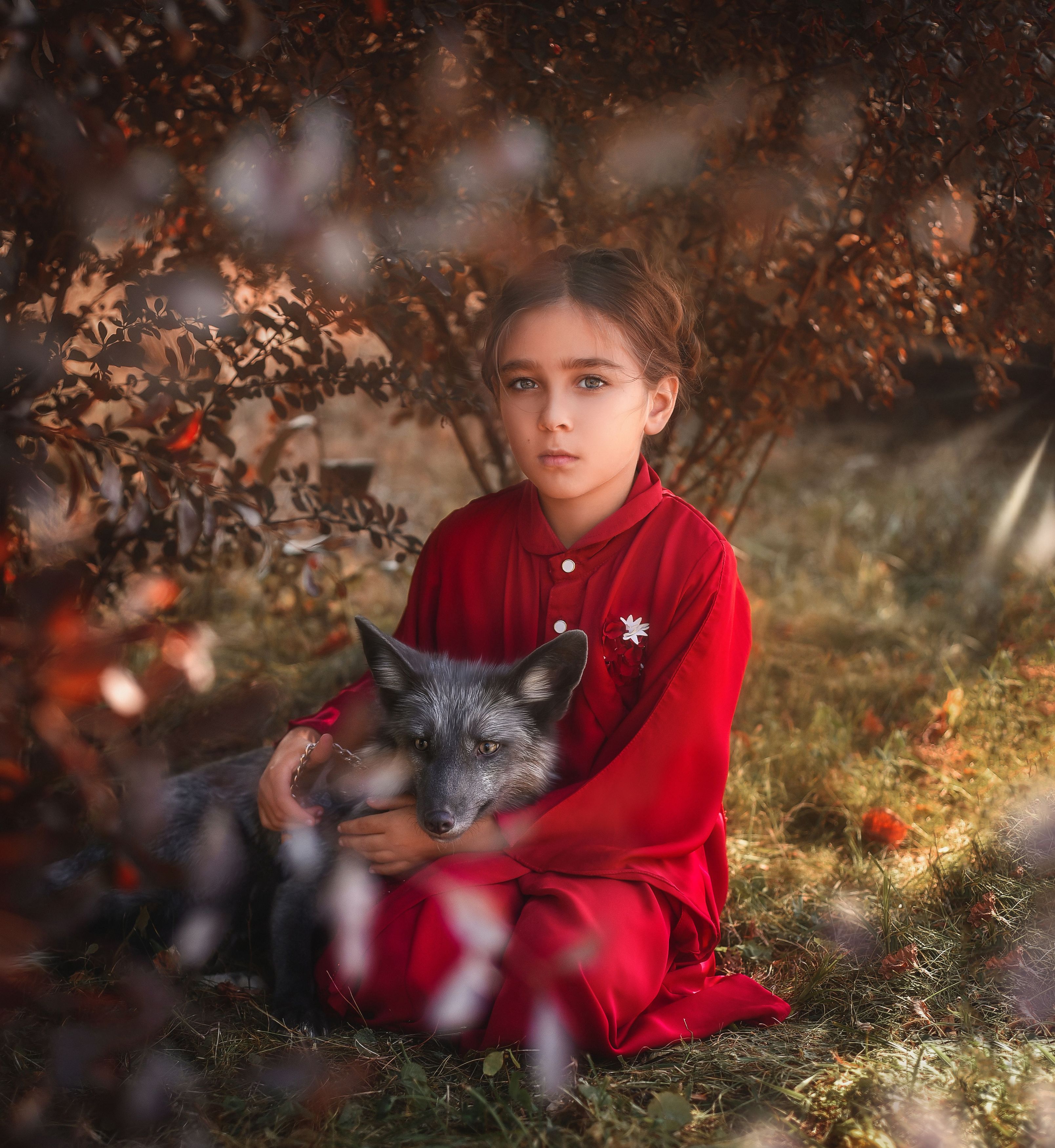 Дети, маугли, животные, лиса, в красном, Индия , Виктория Андреева