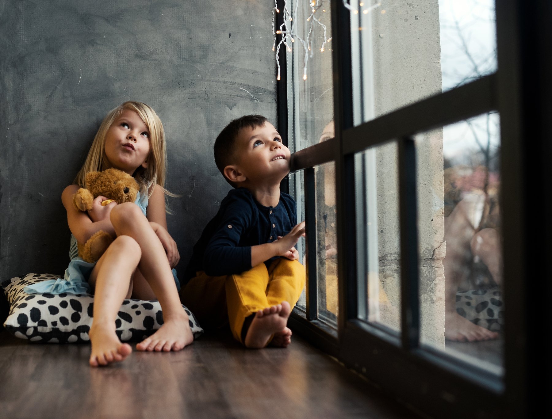 брат,сестра, окно, гирлянда, Виктория Разина