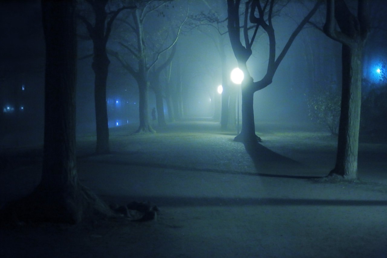 парк, ночь, фонари, свет, тень,, Виктор Климкин