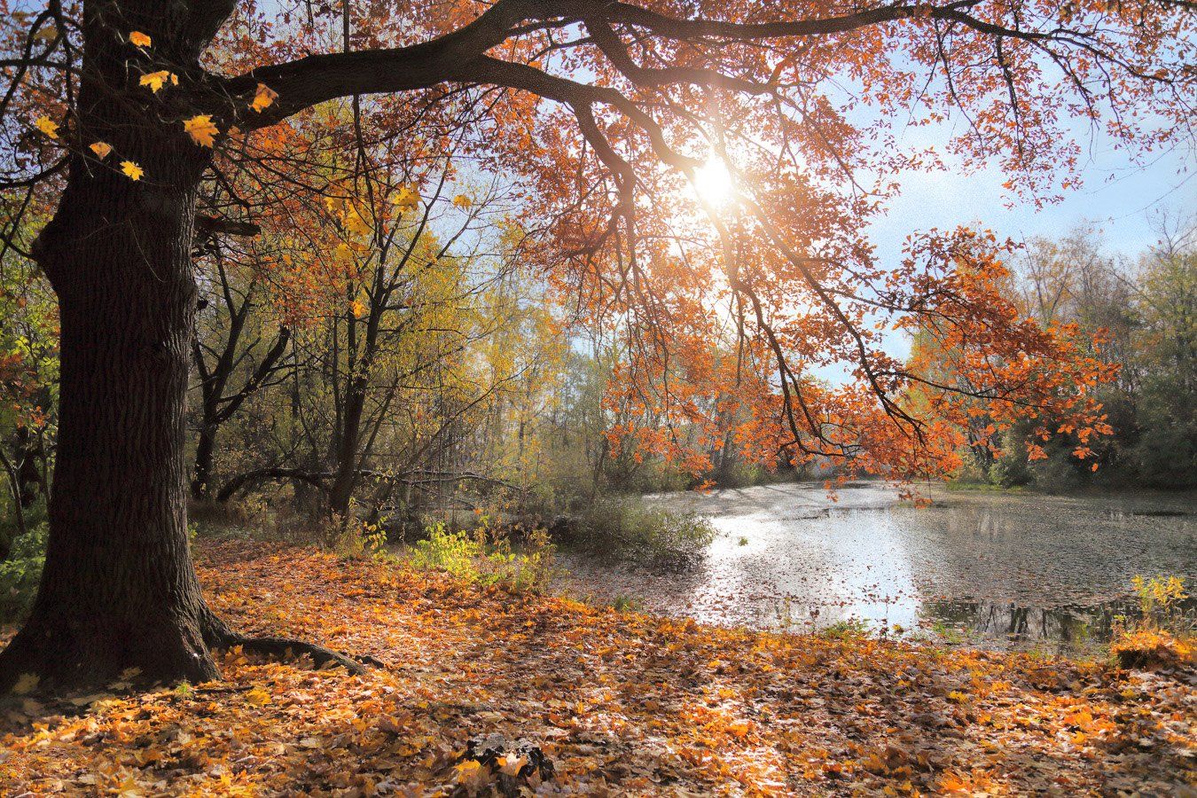 осень, пруд, солнце, краски, Виктор Климкин