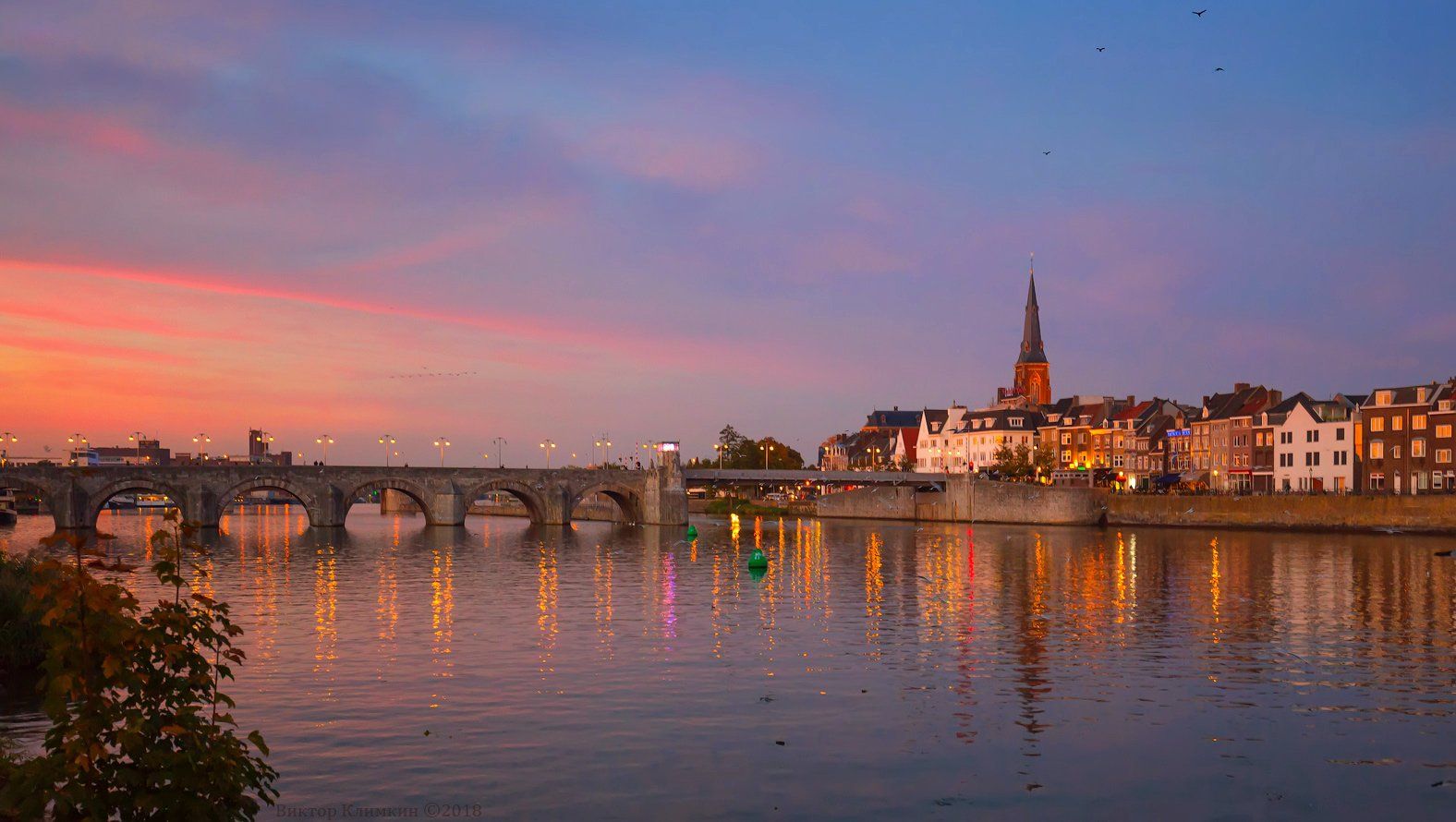 maastrichtr, маастрихт, голландия, нидерланды, река, маас, вечер, птицы, стая, Виктор Климкин