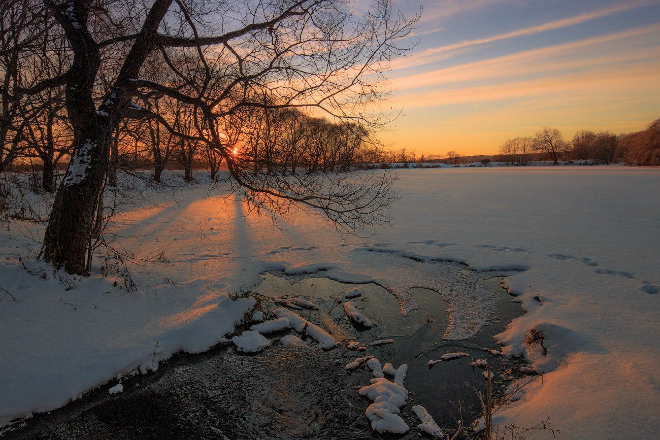 вечер, закат, зима, солнце, Виктор Климкин