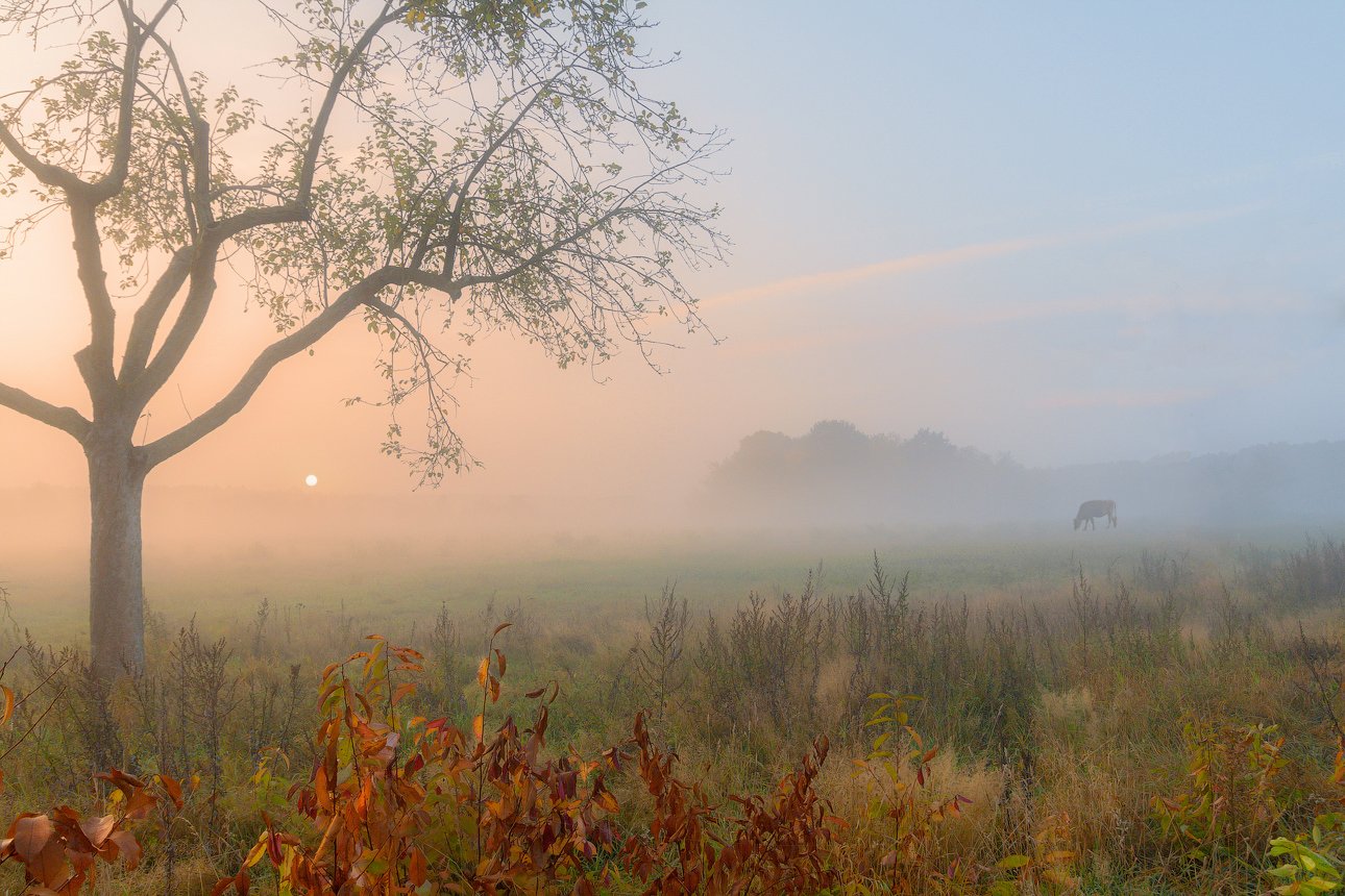 Восход, Корова, Осень, Солнце, Туман, Утро, Виктор Климкин