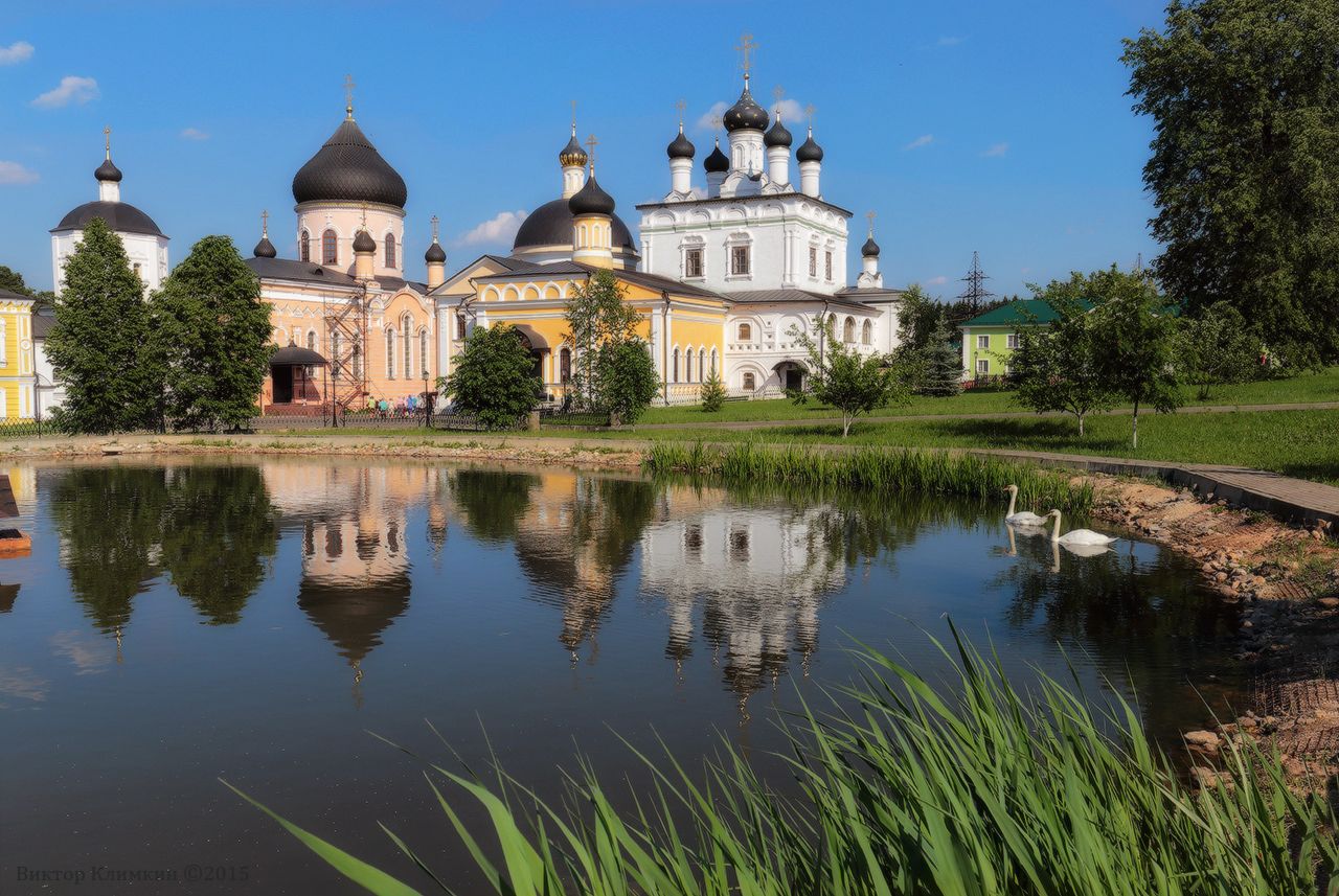 Вознесенская Давидова пустыньЗвонарьКолоколЛебедиМонастырьПрудХрам