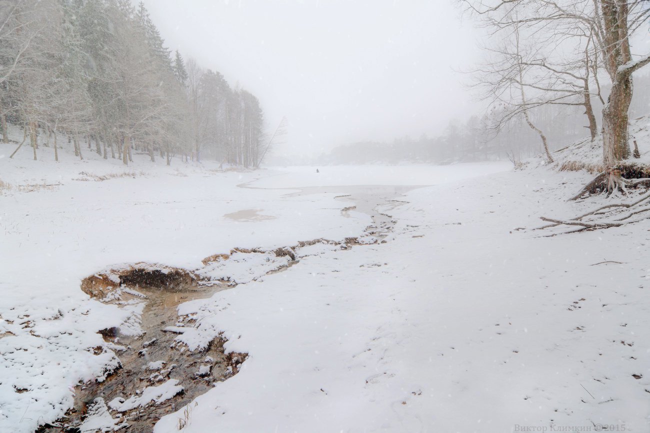 Зима, Река, Рыбак, Рыбалка, Снег, Снегопад, Виктор Климкин