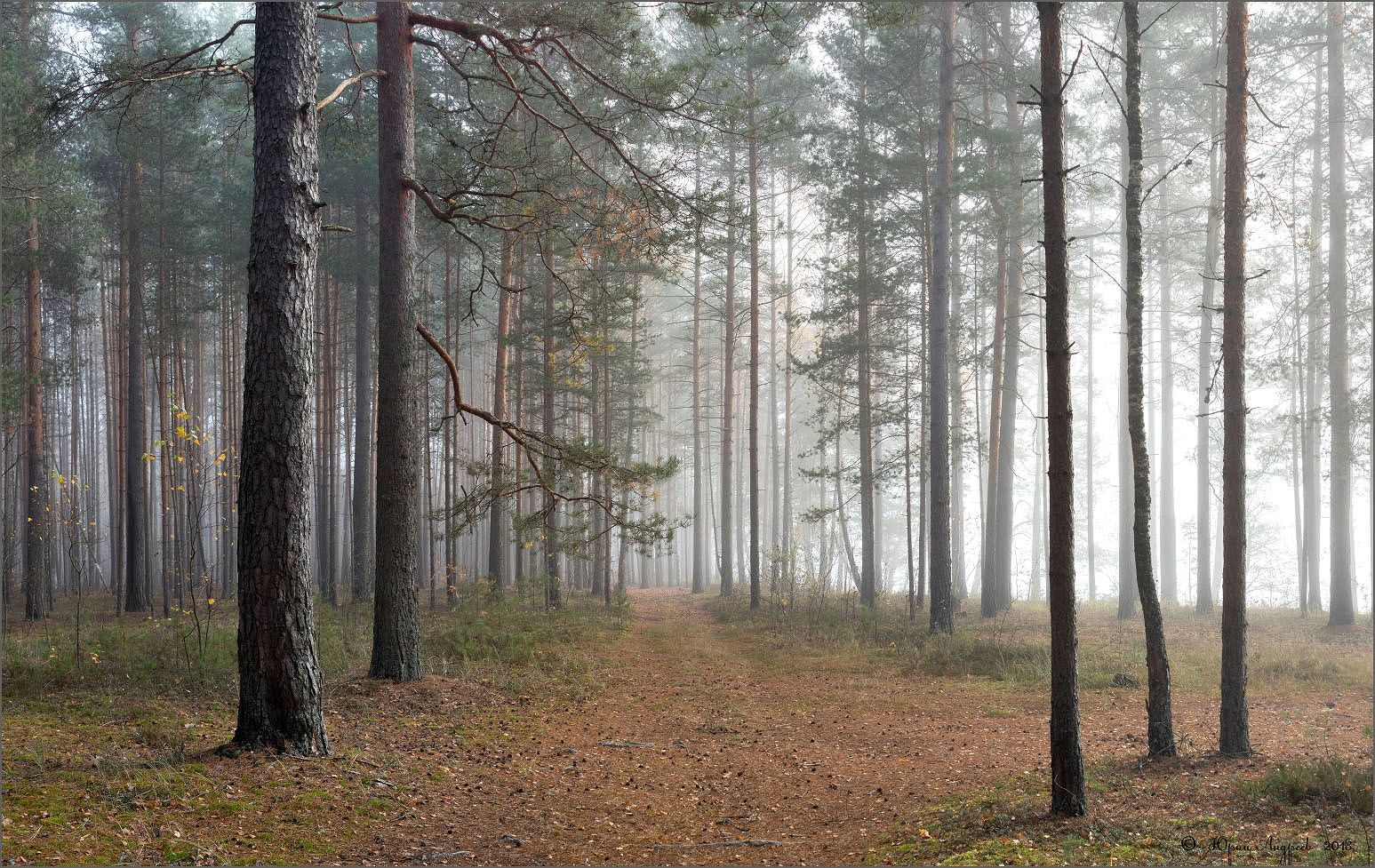 лес туман утро сосны, Юрий Андреев