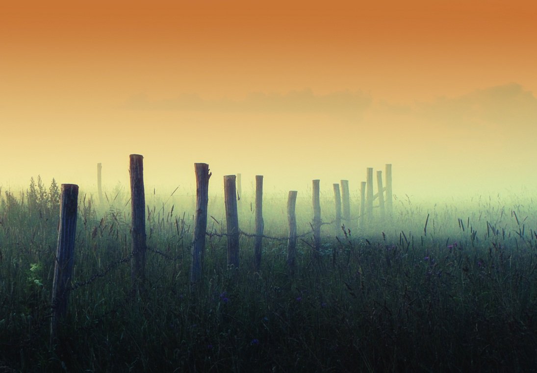 туман, забор, поле, вечер, литва, Vitalijus Serioginas