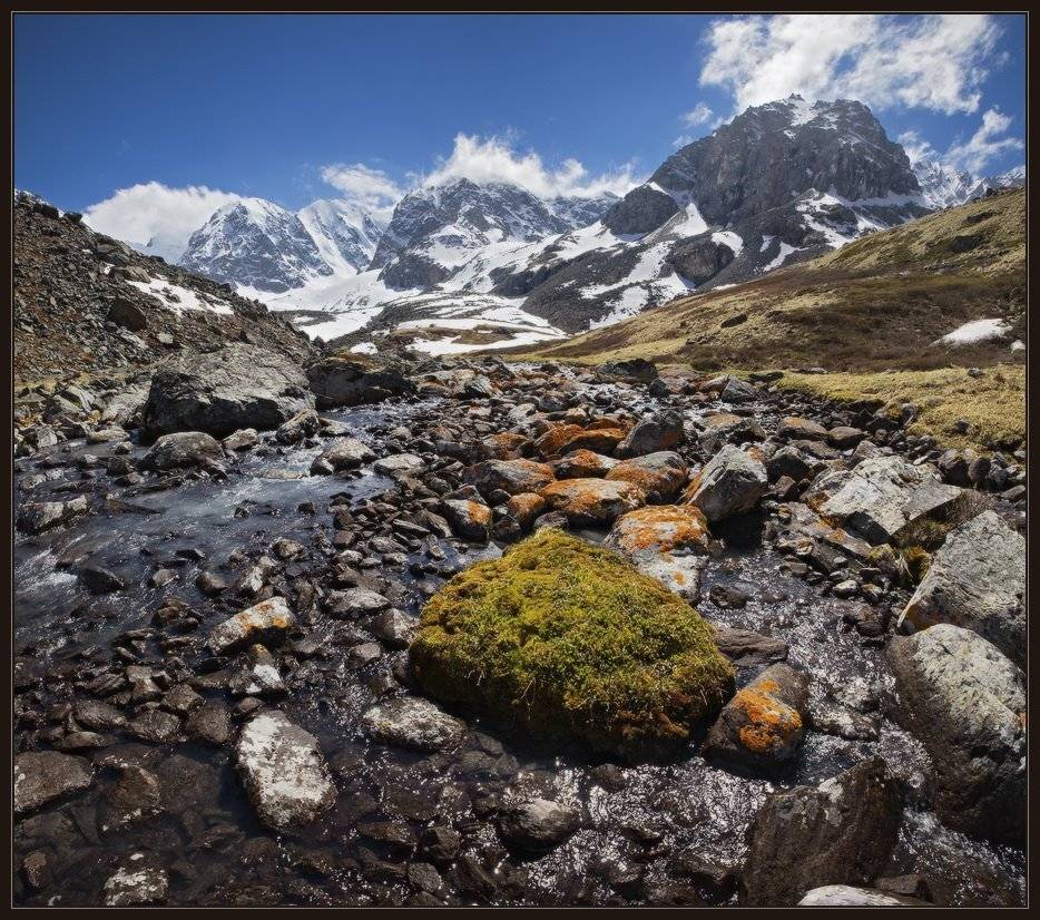 Верховья реки Каракабак (Черная бровь), что впадает в р. Маашей, которая в свою очередь впадает в р. Чуя, приток Катуни.