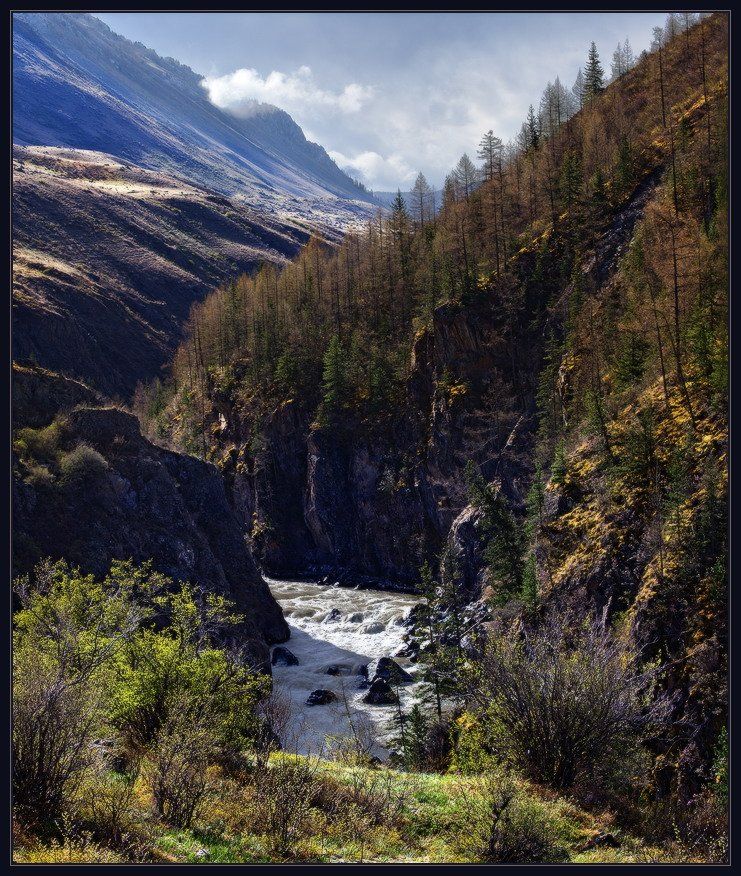 Каньон Мажой на р. Чуя. Внизу самый крутой порог Мажойского каскада - "Президиум". Ниже этого места строится плотина (ГЭС), так что возможно затопит всю эту суровую красоту. И будет это фото историей :(