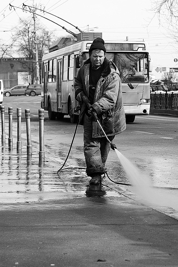 Мне кажется горизонтальный более уместен. Не кажется ли Вам так. Рабочий движется по горизонтали и троллейбус по горизонтали. Посмотрите еще разок и серией жахните - тем паче сайт позволяет.