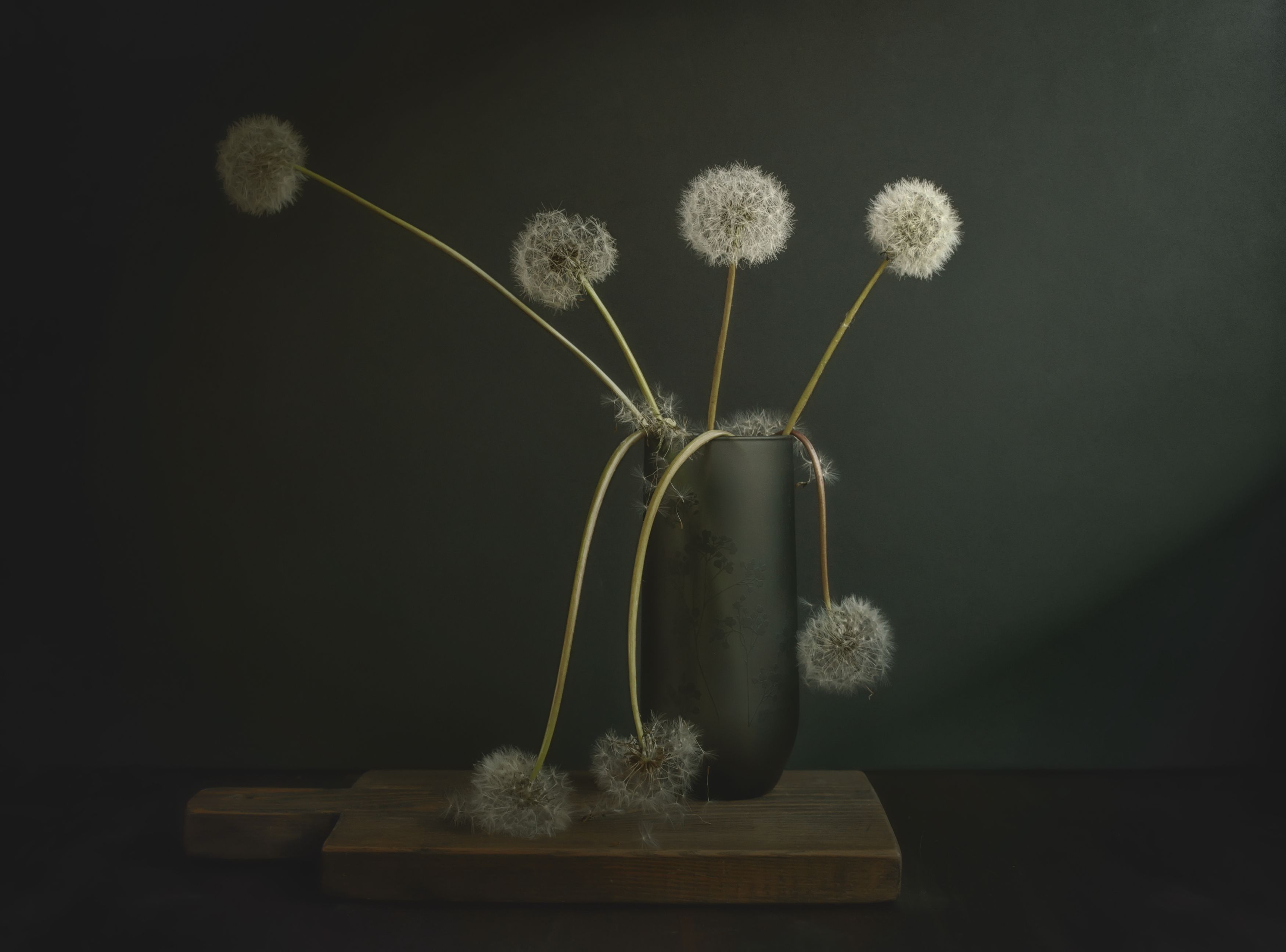 одуванчики, ваза, разделочная доска, деревянная подставка, натюрморт, stilllife, Стасов Виталий