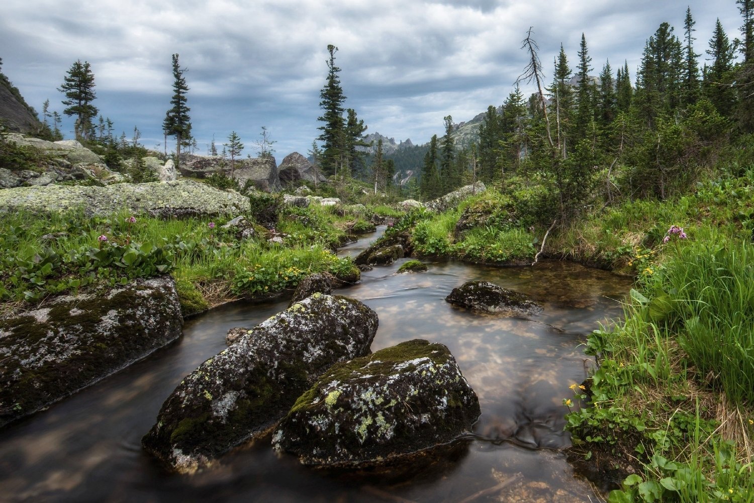 Саяны, Западный Саян, Ергаки, ручей, вечер, тайга, сумерки, Красноярский край, Виктор Зайцев