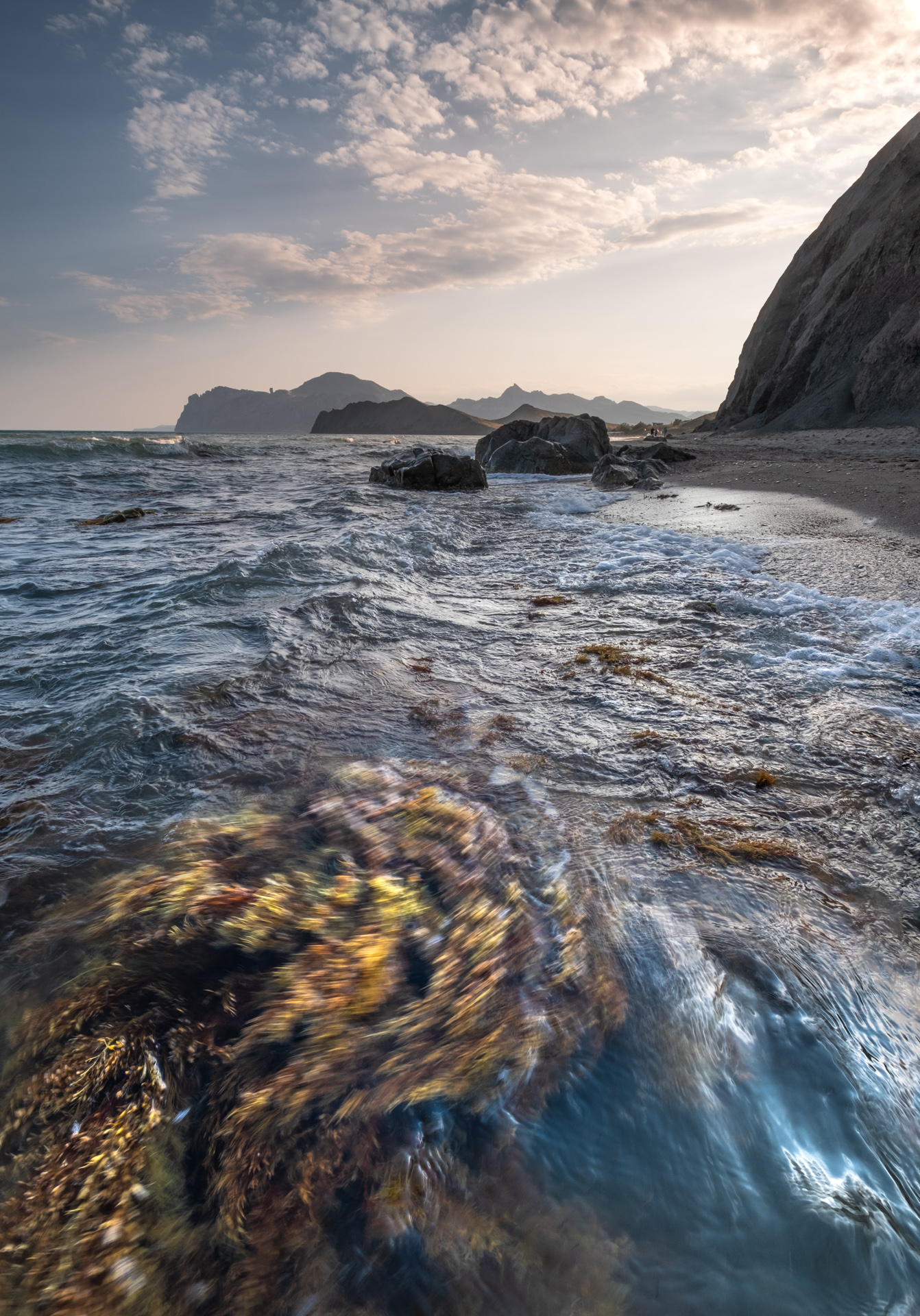 Ваша съемка — как мгновение, застывшее в воде: волны, камни, свет — всё в движении, но с тихой силой. 🌊✨