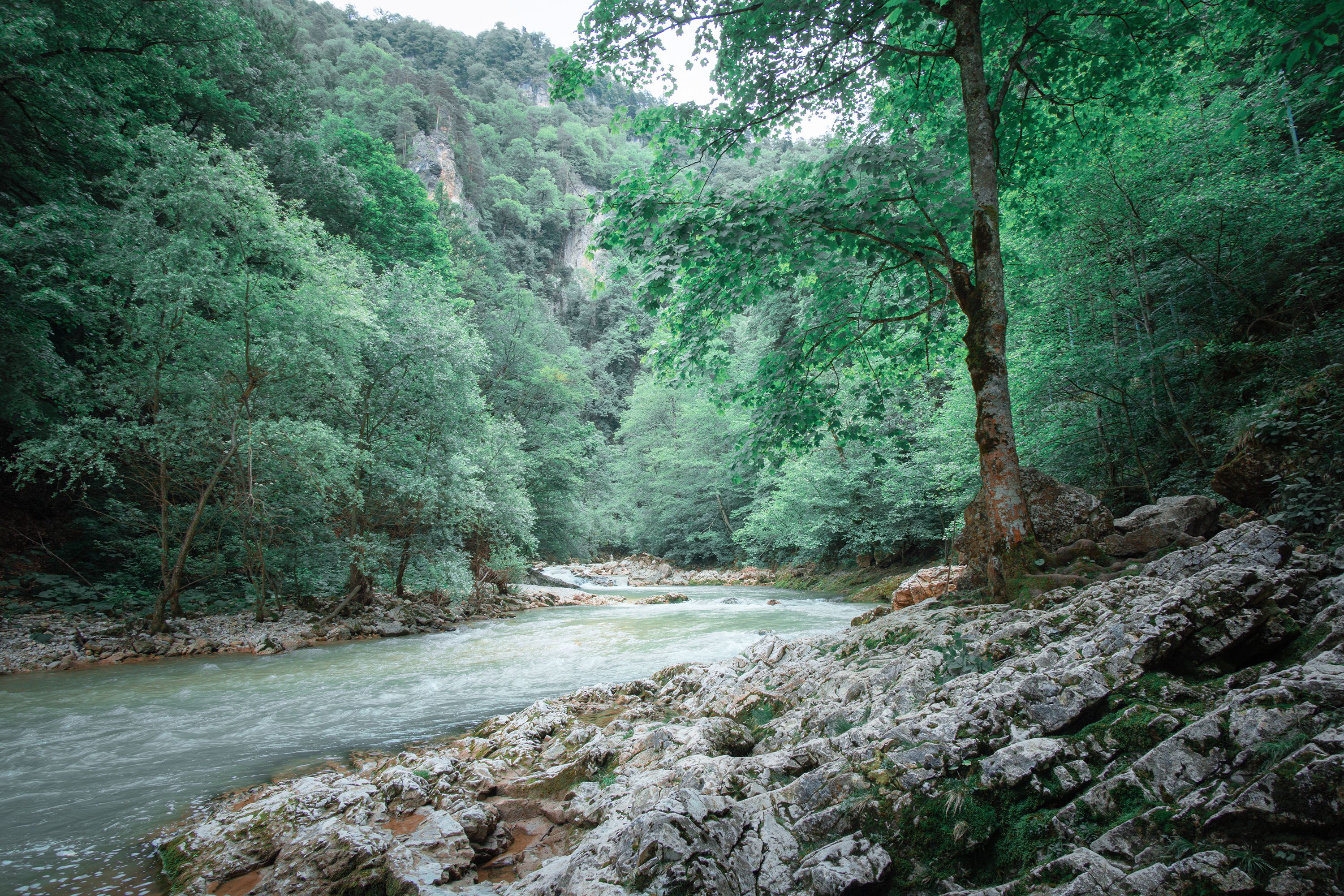 лес, река, горы, скалы, дерево, Вадим Коваленко