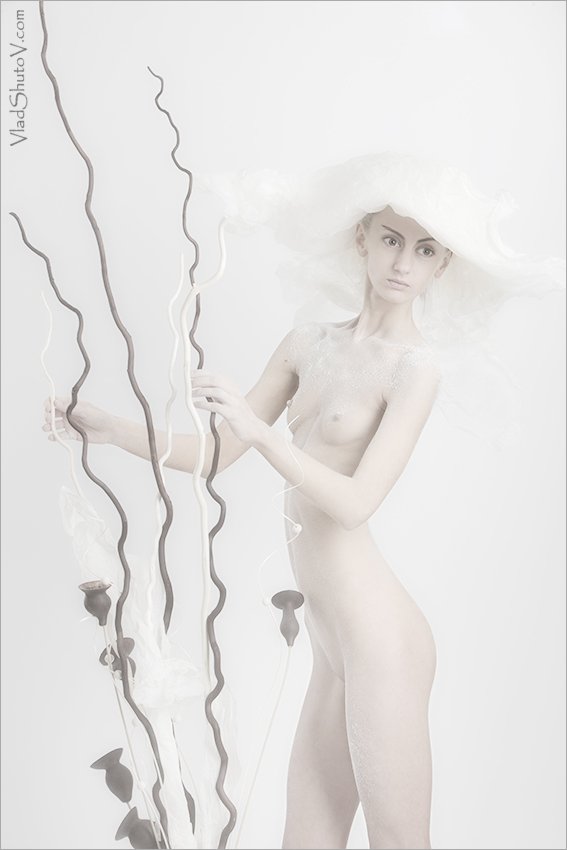 я, честно говоря, не вижу нежности или легкости, или чего-то подобного... по-моему, странные длинные изгибающиеся линии в совокупности с состоянием модели говорят, скорей, о некоторой дисгармонии внутренного и внешнего и о тяжести, которая через соответствующую тональность так легко и ненавязчиво передается... :)