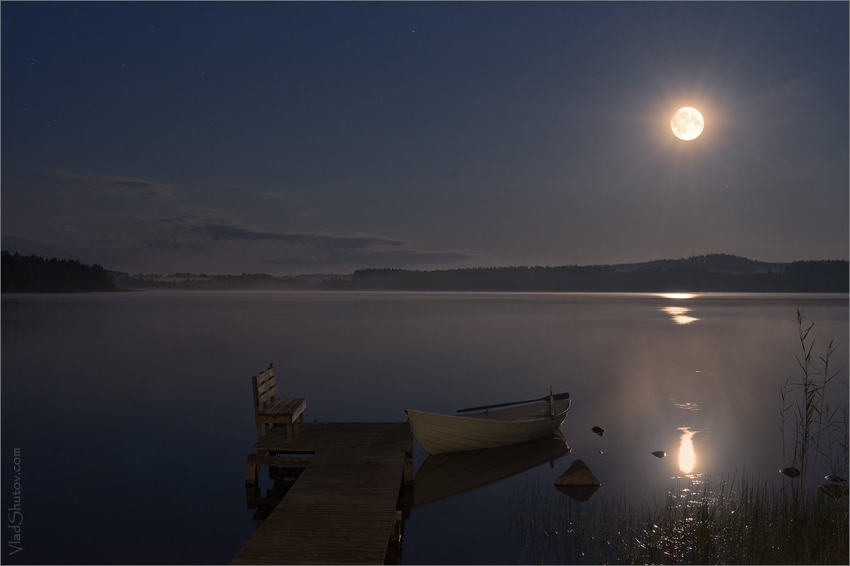 Плотнее нельзя, - слева берег создает дополнительный план. Кроме того, после кадрирования диагональ причал-луна становиться активнее, привнося ненужную динамику.