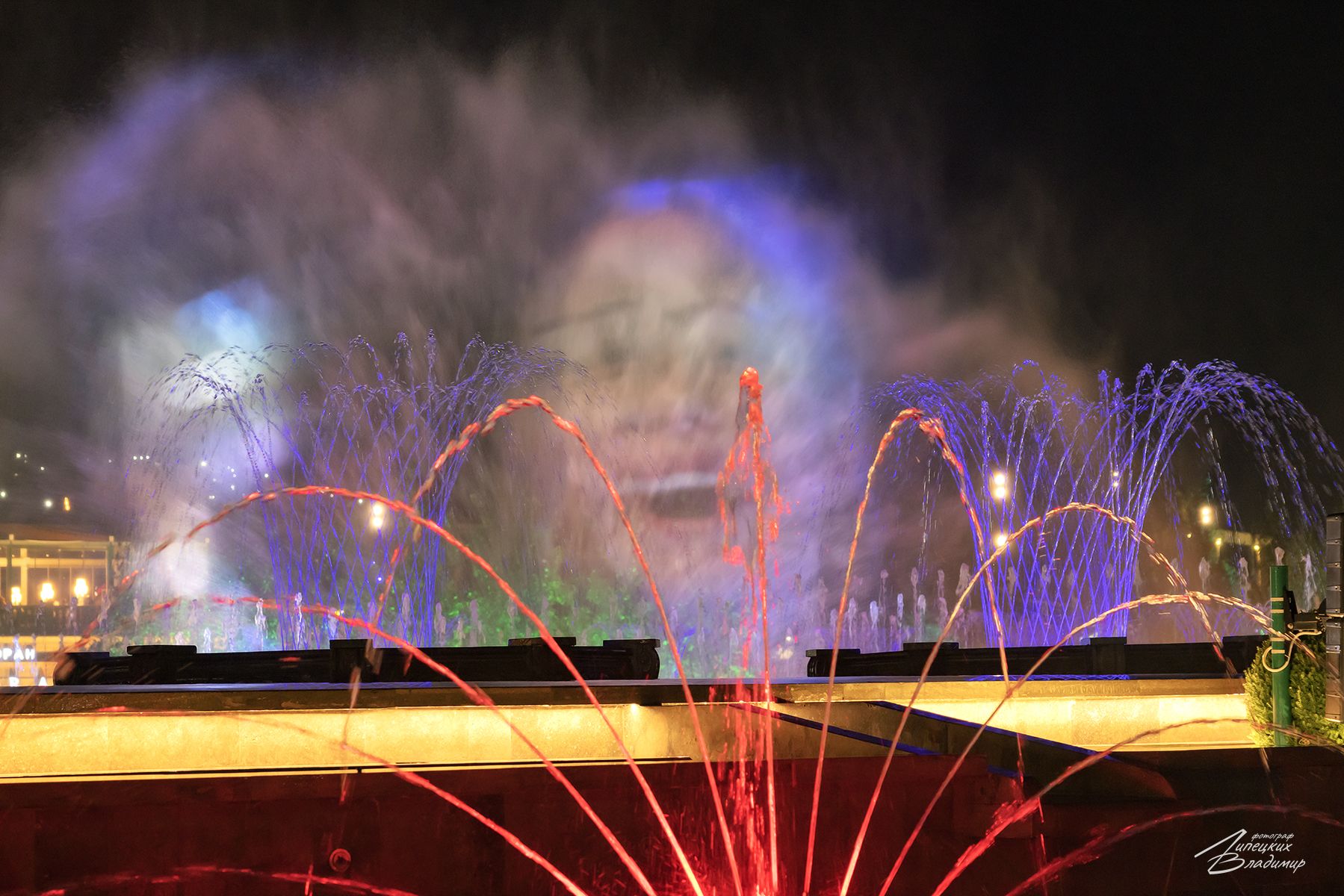 Удалось посетить последнее с этом сезоне Светомузыкальное шоу фонтанов в Дербенте. Очень зрелищное было представление. Кроме самого шоу, в потоке водяных капель создавалась проекция различных сцен и изображений.