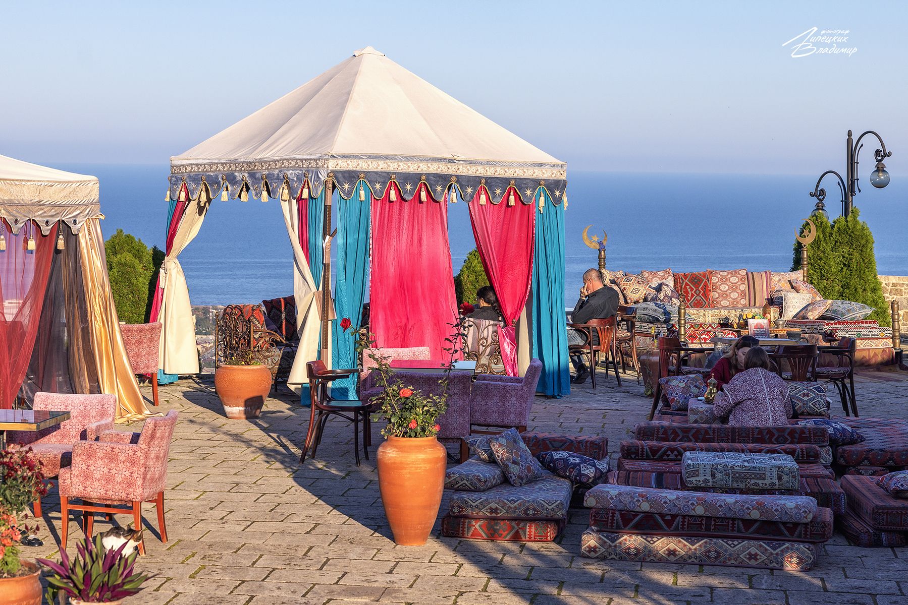 В верхней части крепости находится восточное кафе. Цены неплохие, но вкусный кофе и
