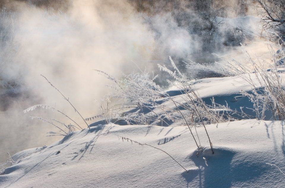 Трудно сказать.В 2006 на Крещенские морозы во многих местах парило.Хотя мороз был за -30.По спегу ходил как по асфальту.