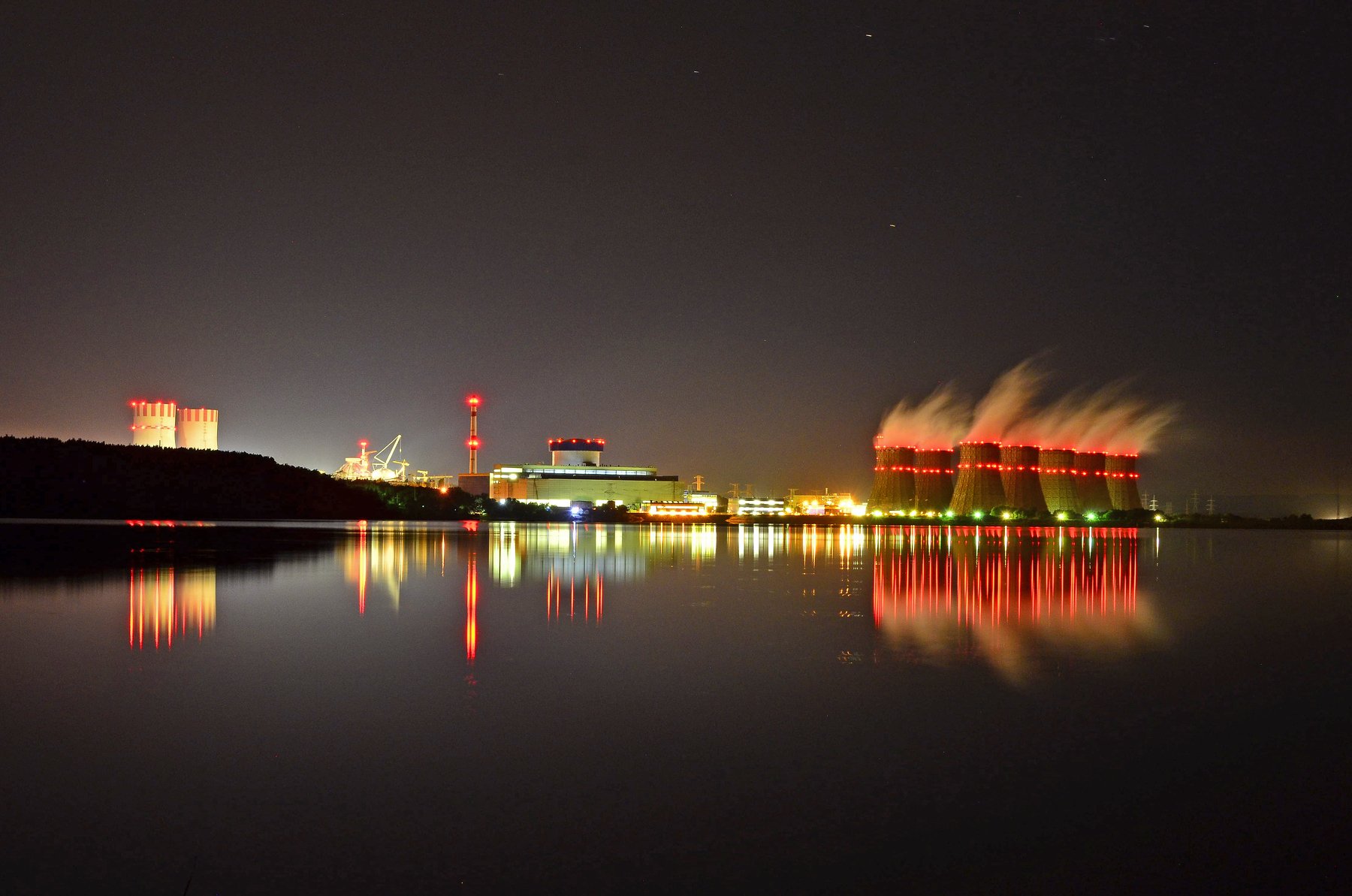 атомная станция, градирни, огни, мощность, вода, ночь, Владимир Володин