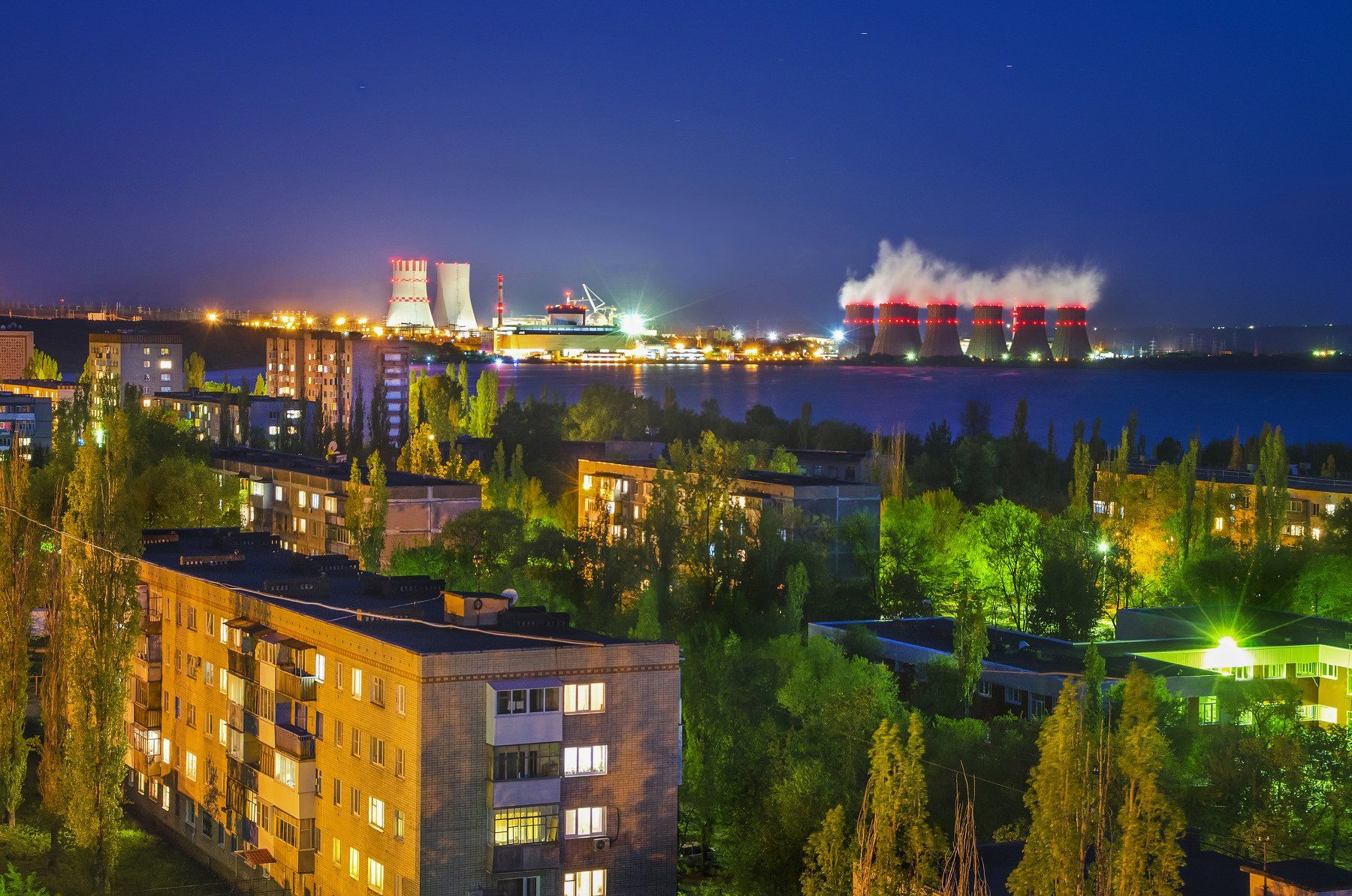 ночь,свет,огни,атомная станция,электричество,город,крыша, Владимир Володин