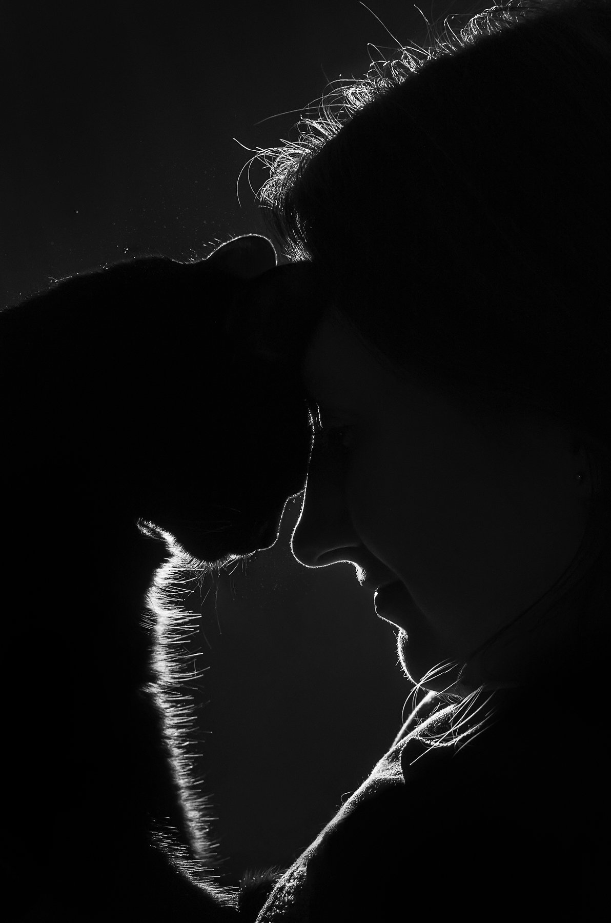 контурный свет,тёмный,кошка,девушка,портрет,силуэт,дружба, Владимир Володин