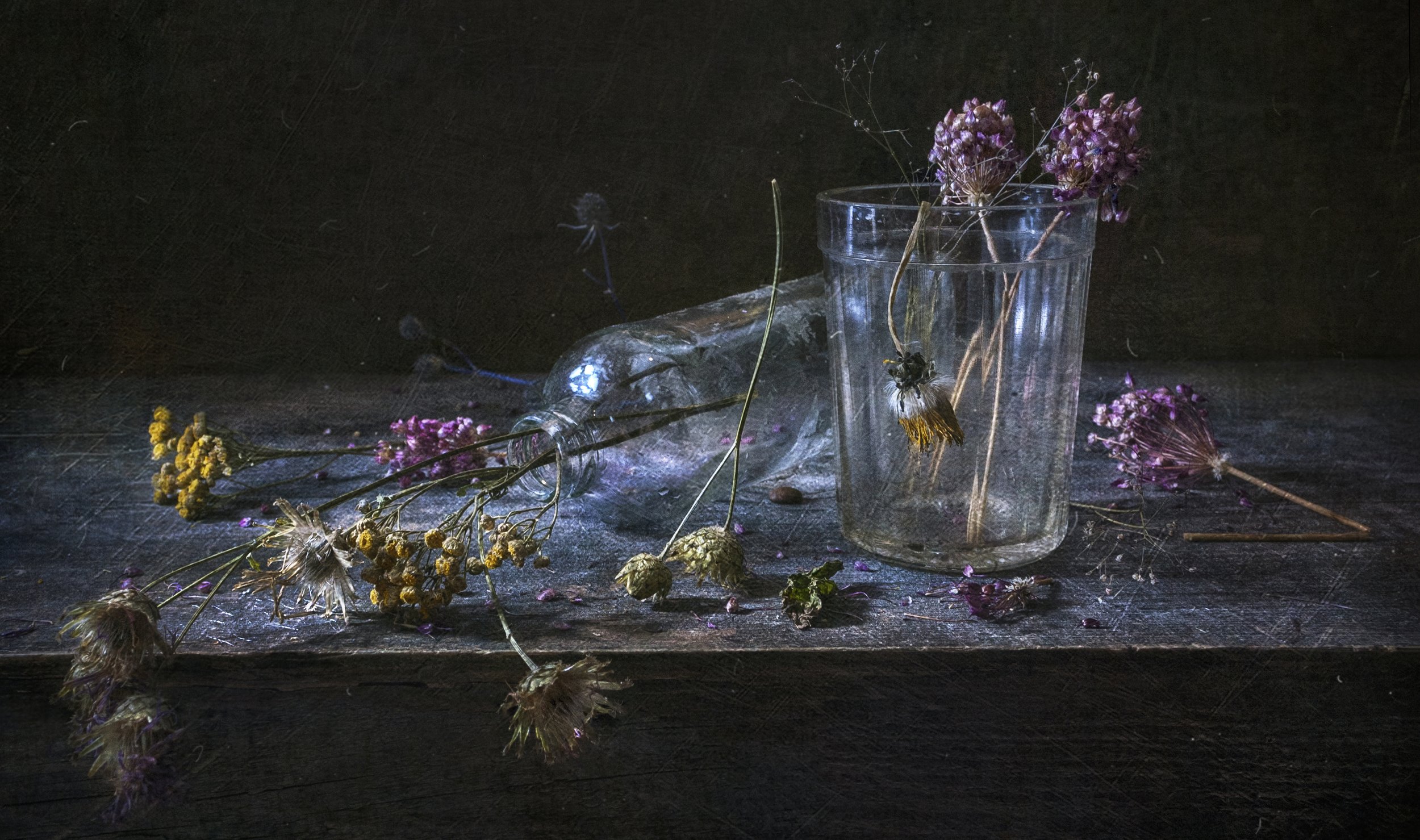 стекло,стакан,бутылка,травы,сухие,воспоминания,цветы,гербарий,дерево, Владимир Володин