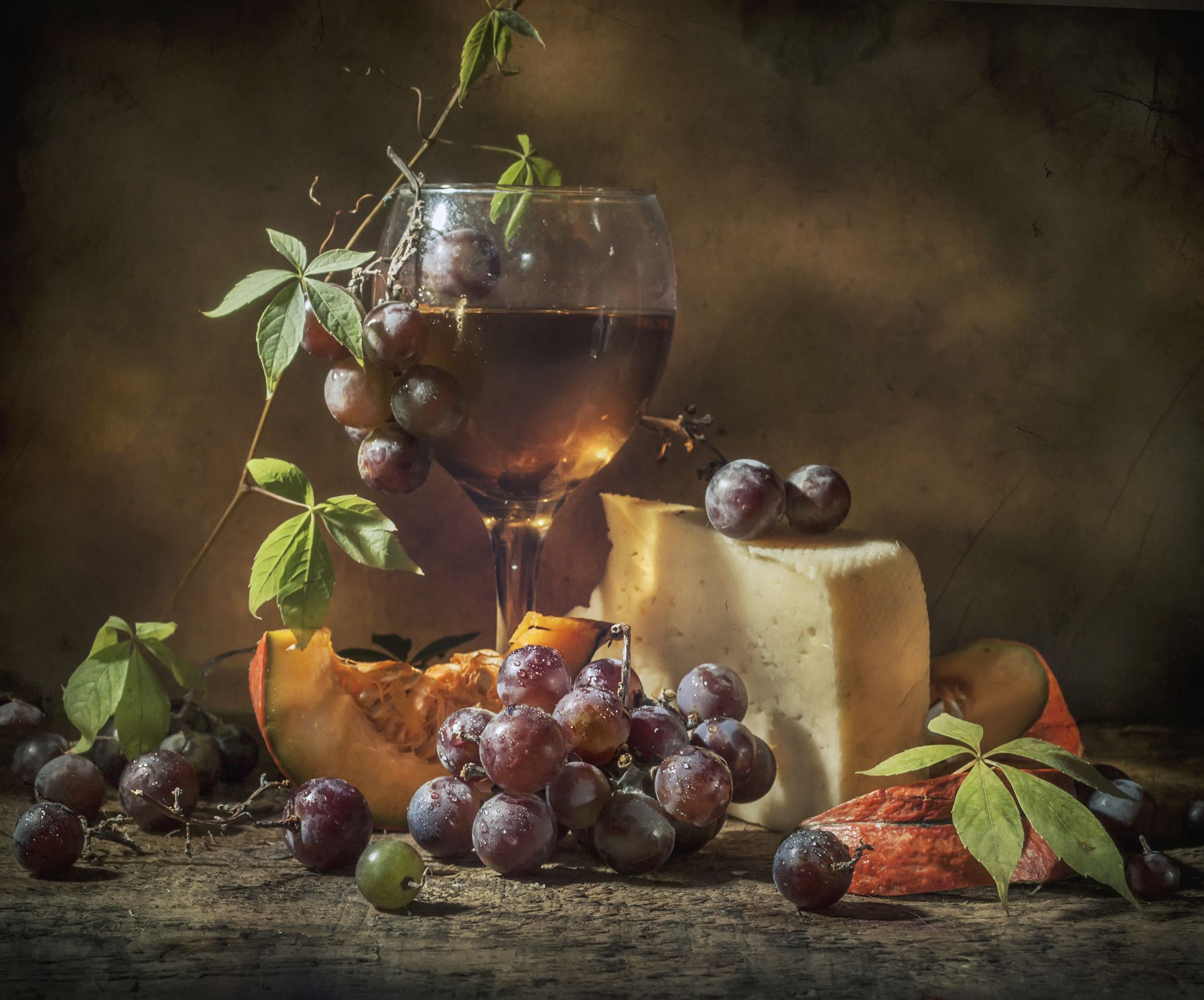 осень,тыква,бокал,вино,виноград,листики,оранжевый,сыр, Владимир Володин