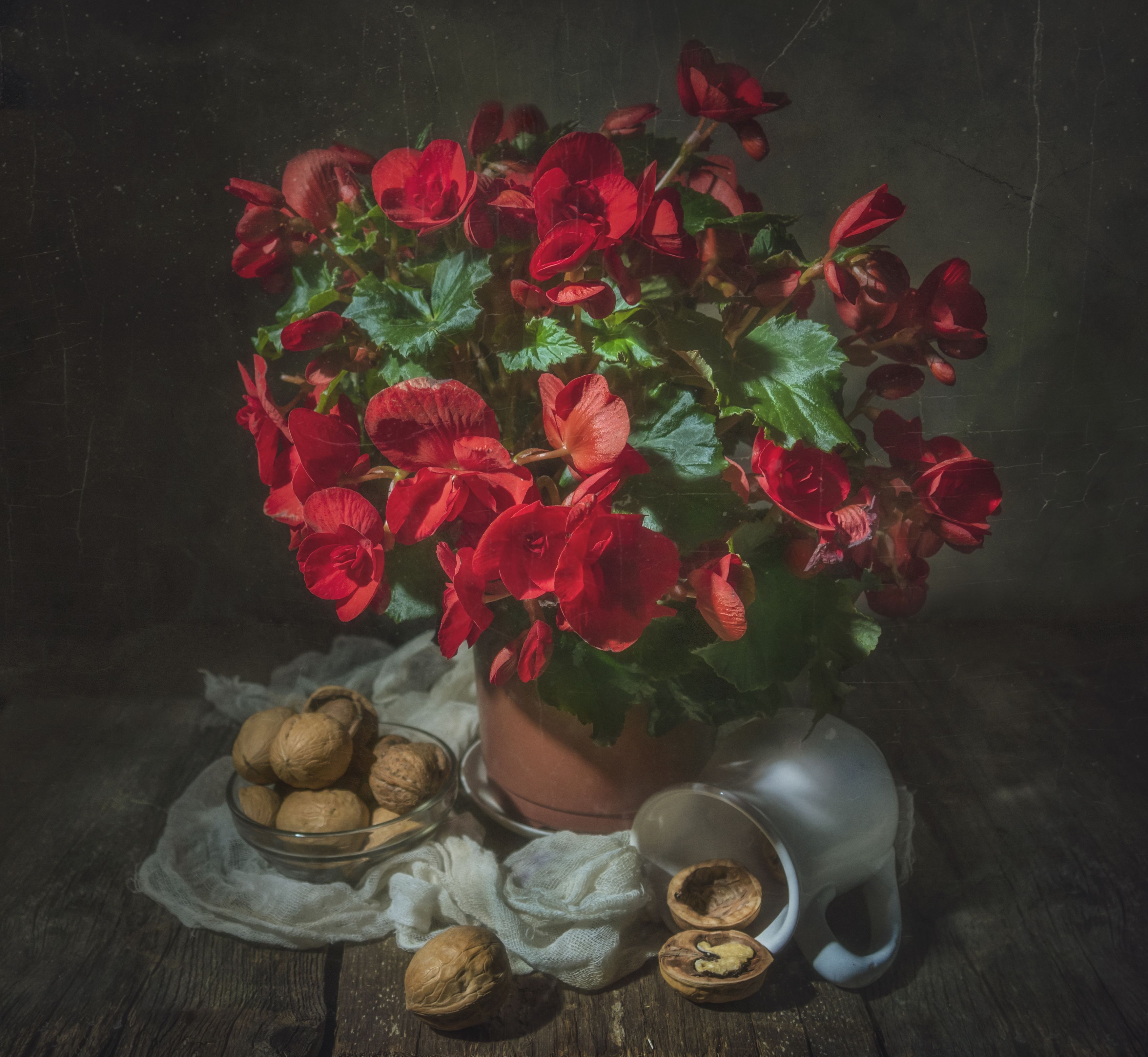 цветы, красные, орехи, Владимир Володин