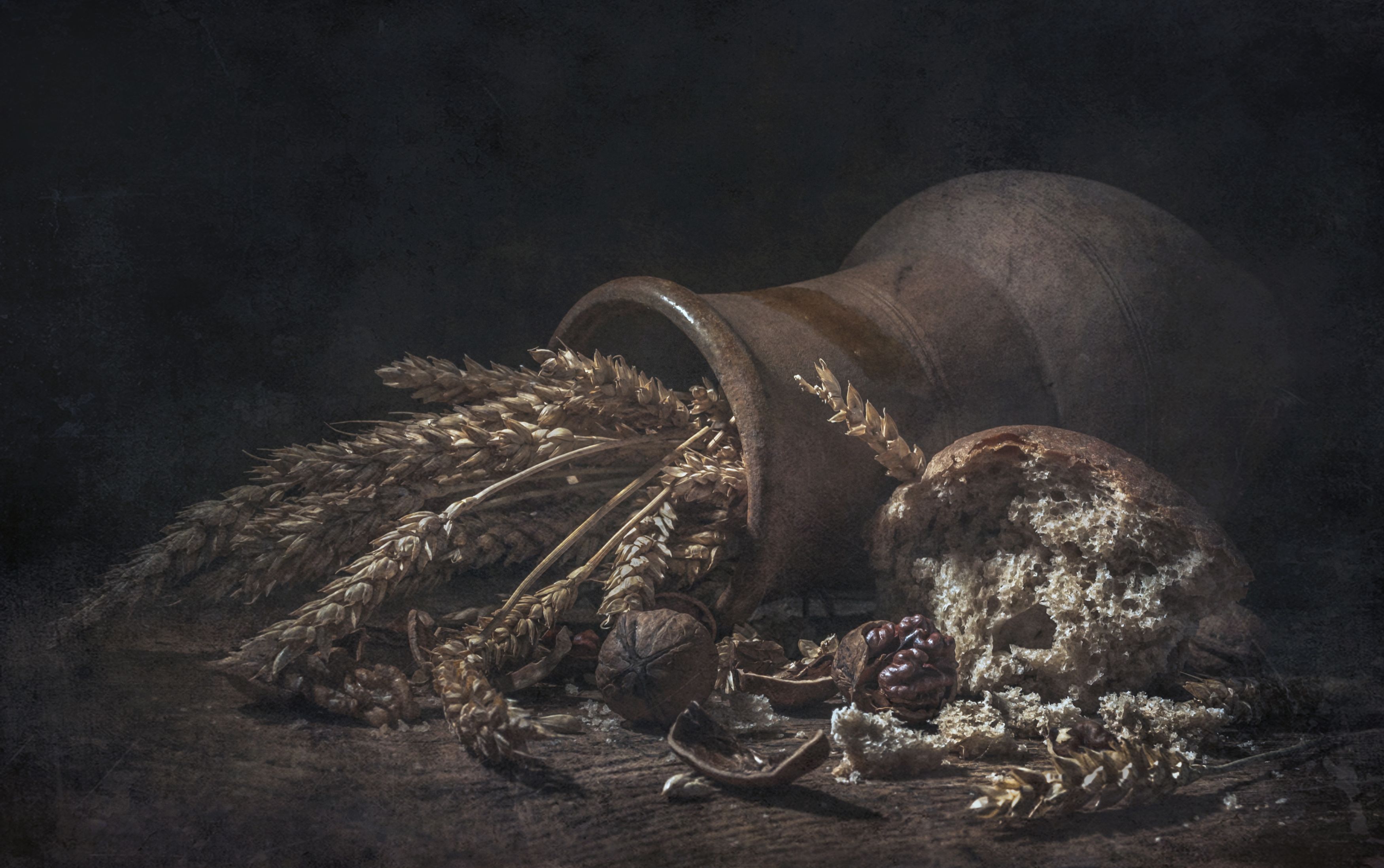 старая, крынка, злаки,колосья,орехи,хлеб,краюшка,ломоть,деревня, Володин Владимир Владимирович